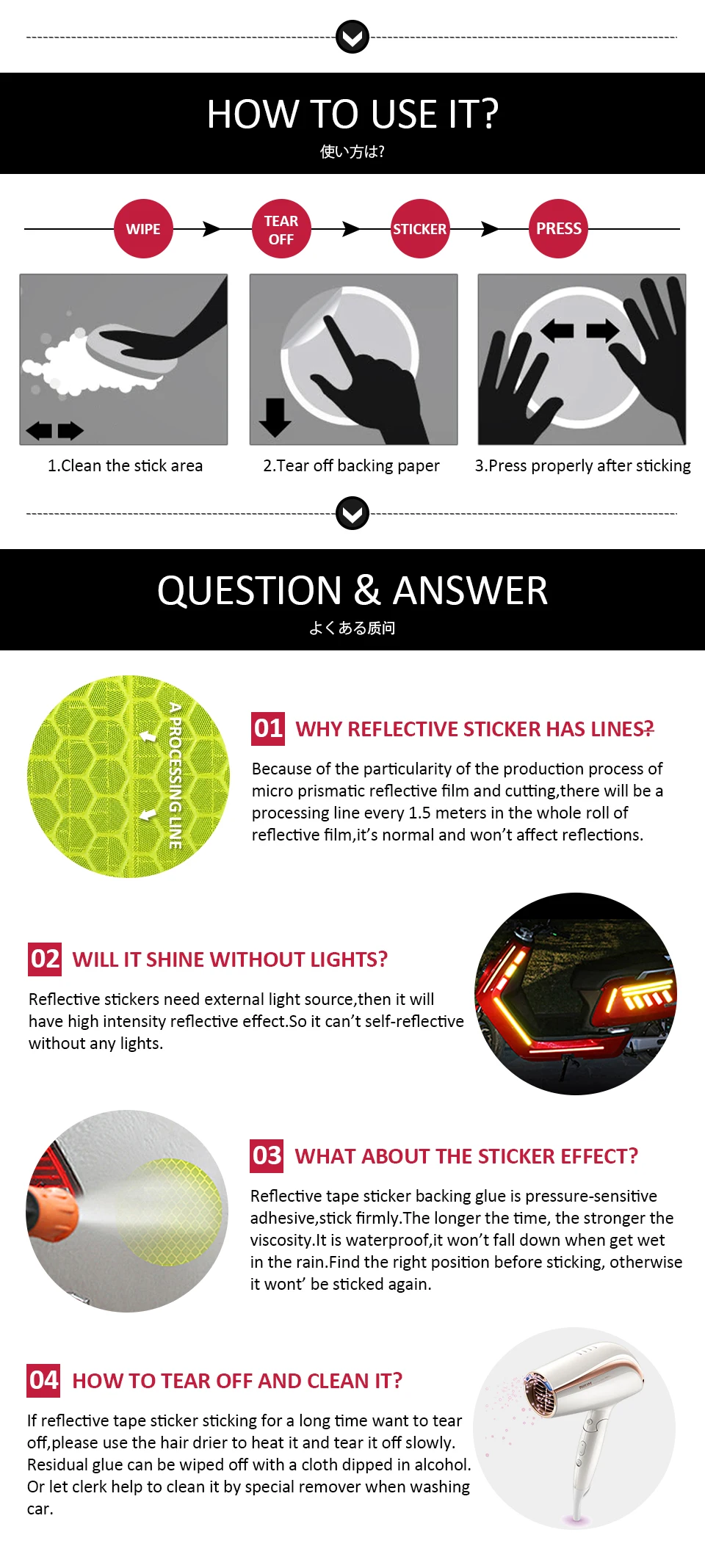 1. Высокая Светоотражающая и широкоугольная технология микропризматического отражения для лучшего отражающего эффекта.