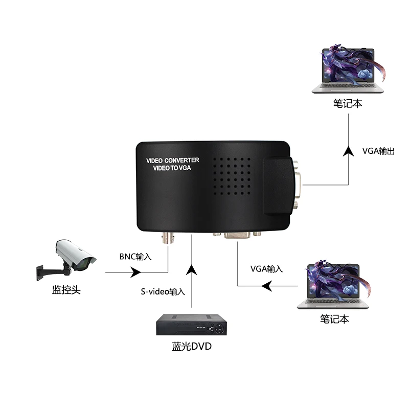 Описание: Этот BNC-VGA видео конвертер может поддерживать высокое разрешение (до 1920x1080) видео изображение. Видео конвертер может обеспечить высокое качество изображения и дать стабильный выход изображения на VGA выходное устройство. Он прост в установке и эксплуатации, мгновенно переключает источник между видео, S-Video и ПК с помощью одной кнопки и поворачивает монитор на выход с высоким разрешением. Примечание:Входной порт BNC-это аналоговый av-сигнал, а не SDI-сигнал. Особенности: -Plug & play, не требуется программное обеспечение или драйвер.-Высокая частота сканирования, частота обновления может быть легко переключена между 60 Гц-75 Гц. Разрешение переключается с 800x600 весь путь до 1920x1200; Совместим с CRT монитором и ЖК-монитором.-Функция сверхпрочного 3D изображения делает фотографии четкими и устойчивыми. Отличительная Функция PIP, и размер и положение окна можно отрегулировать.-Входной интерфейс AV / S terminator может быть подключен к DVD / PDP / PS2/игровой консоли и т. д.-Широкополосный переключатель PC / TV (200 МГц). Спецификация: Вход: 1xBNC, 1xS-Video, 1xvga (подключение к компьютеру или записную книжку) Подключитесь к AGPВыход: 1xVGA, подключение к монитору или проекторуВидео в: подключение к видеокамере/VCD / DVD/игровой консолиS-video In(YPbPR): подключение к видеокамере/VCD / DVD/игровой консолиРазрешение сигналов VGA:800x600 @ 60 Гц, 800x600 @ 75 Гц, 1024X768 @ 60 Гц, 1280X1024 @ 60 Гц, 1440X900 @ 60 Гц, 1680X1050 @ 60 Гц, 1920X1080 @ 60 Гц, 1920X1200 @ 60 ГцAV/ S-видео вход: автоматическое определение PAL, NTSCВход VGA: байпас5 в постоянного тока: подключение к адаптеру переменного токаПоддержка сигнала: видео, S-Video, VGAСистема поддержки: PAL / NTSCСистемные требованияПоддержка ПК и компьютеров MAC.Не нужно устанавливать драйвер устройства, подключать и играть.Совместимость с CRT монитором и ЖК-мониторомМатериал: пластикЦвет: черныйВес нетто: 0,068 кг/0,031 фунтРазмеры: 92x55x1 9 мм/3.62x2.17x0.75 дюймов Посылка включает в себя: (пожалуйста, смотрите фотографии, которые вы выбираете) 1 x BNC для преобразования видео в VGA1 х Кабель питания постоянного тока или адаптер питания(Пожалуйста, убедитесь, что выбранное вами изображение-это то, что вам нужно, мы вышлем то, что вы выбрали, или вы можете оставить сообщение о том, какая штепсельная вилка вам нужна, в противном случае мы отправим штепсельную вилку европейского стандарта)1 x Руководство пользователя