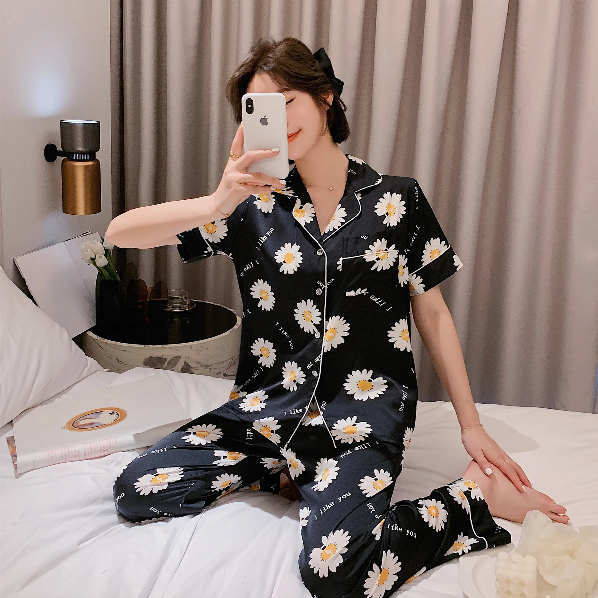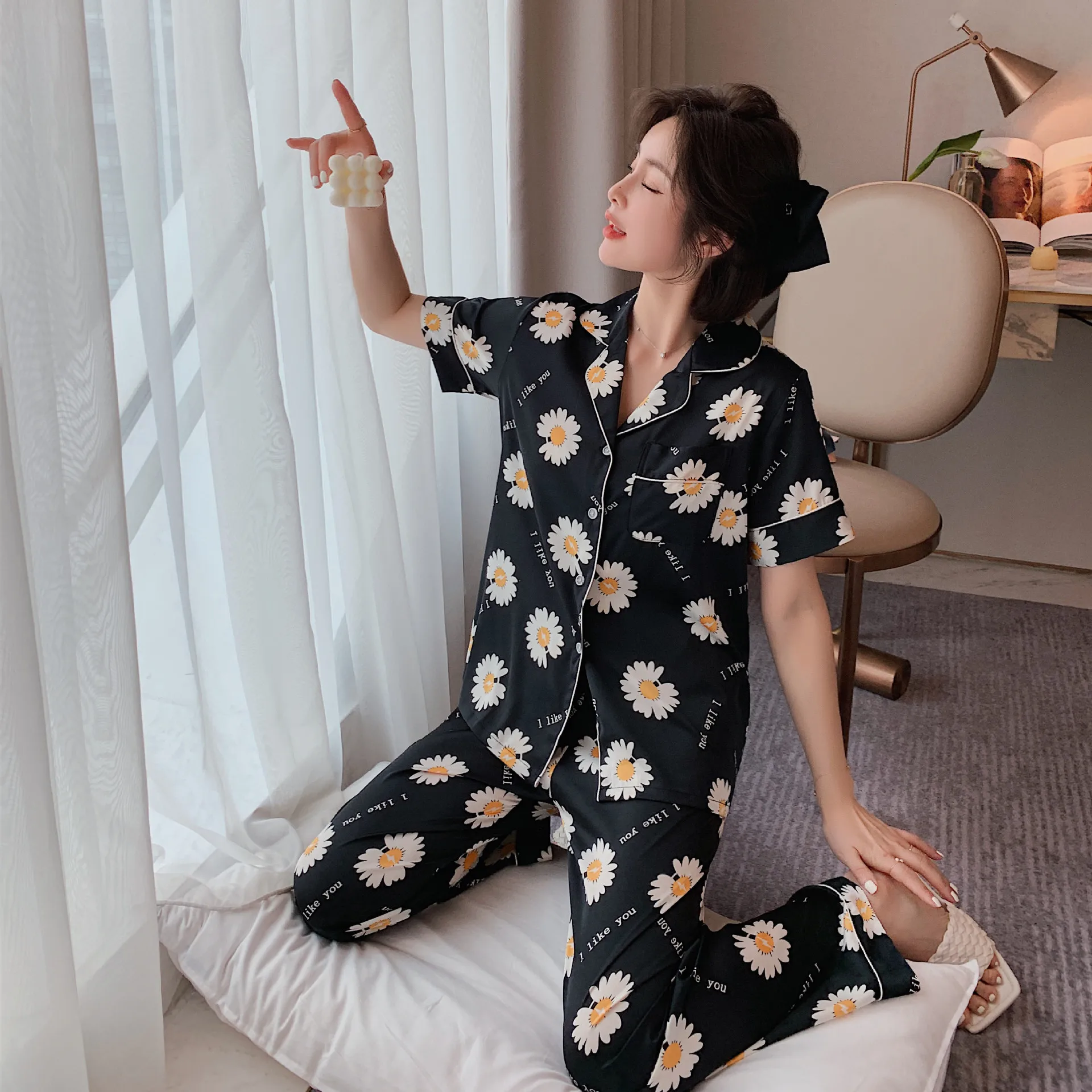 Женская Хлопковая пижама женская из двух предметов домашняя одежда костюм