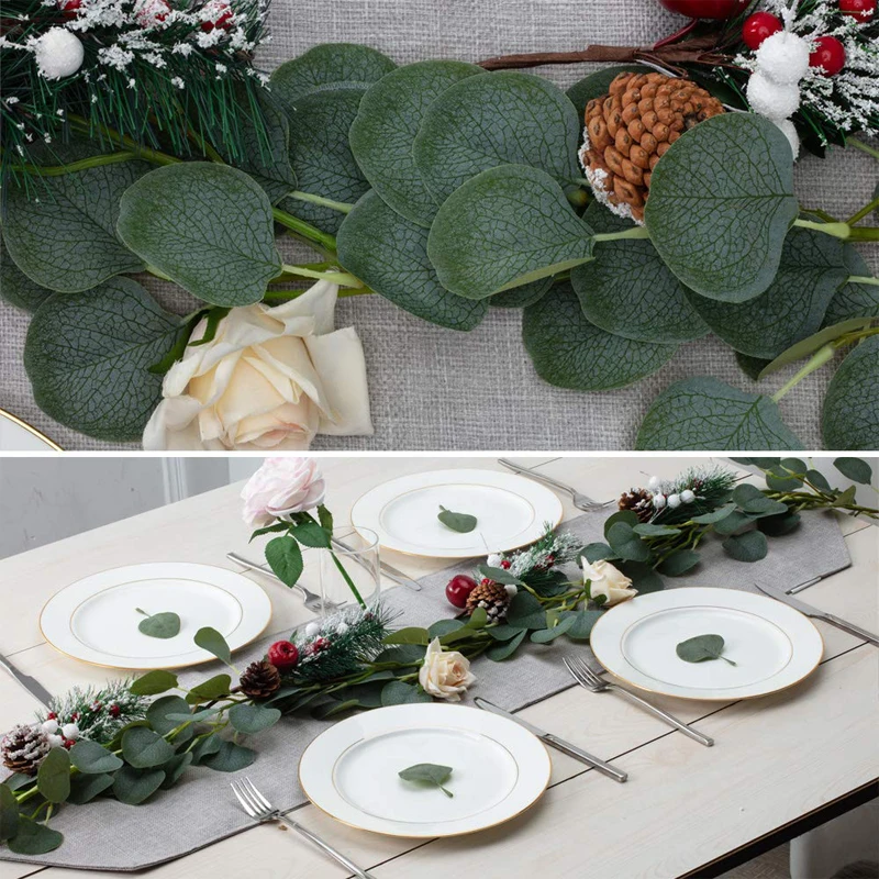 Детали: * Искусственные листья эвкалипта лоза ротанга Декор * Реалистичный и яркий, привлекательный. * Подходит для дома, свадьбы, вечерние, магазинные и т. Д. * Состояние товара: 100% новый бренд Материал: Шелковый цветок