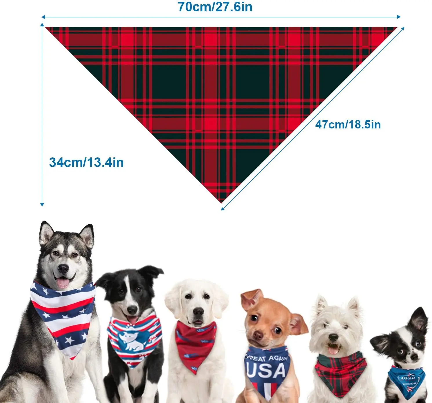 Классический и модный--Узор в красную клетку и синий американский флаг делают бандану классической и никогда не выходит из моды. Вашему питомцу понравится носить ее не только на 4 июля, но и каждый день.