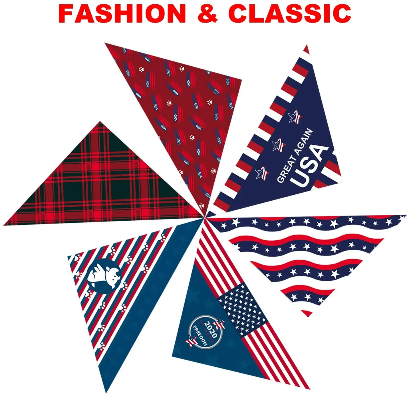 Стиль Дня независимости-банданы с модным рисунком американского флага демонстрируют дух Дня независимости. Они будут замечательными аксессуарами, чтобы сделать ваших питомцев более очаровательными и очаровательными.