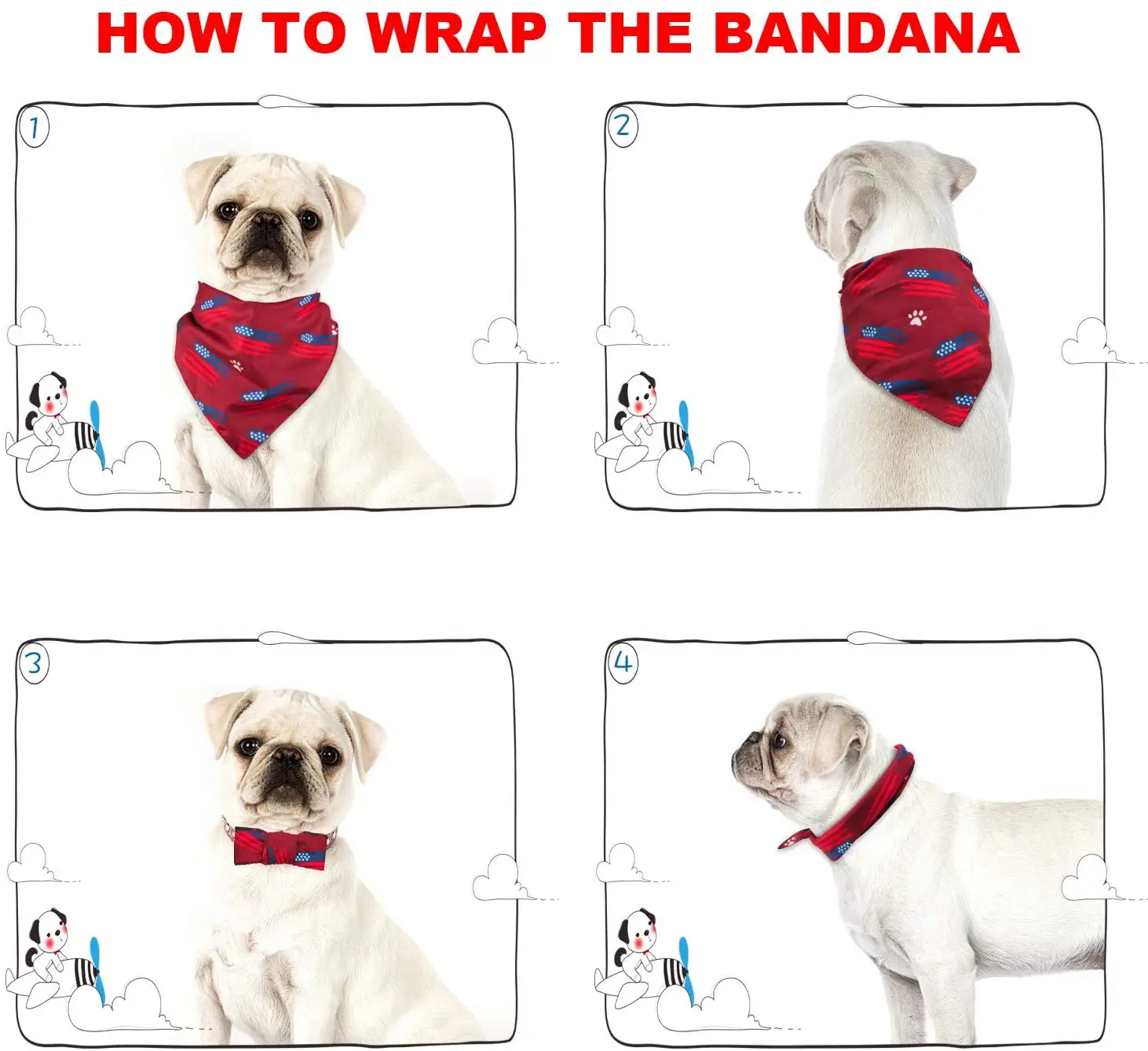 3 банданы--Одна бандана имеет разный узор с каждой стороны. 6 стилей рисунка позволяют менять внешний вид вашего питомца каждый день и не повторять.