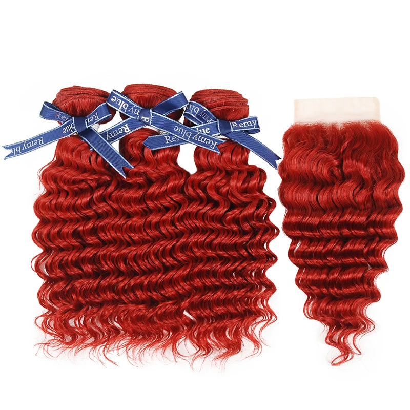 Remyblue волнистые пряди с закрытием красные бордовые человеческие волосы пряди с закрытием бразильские волосы Remy 3 пряди с закрытием