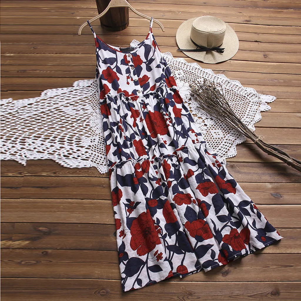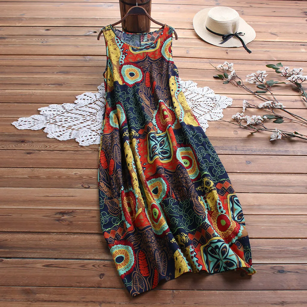 Женское повседневное свободное льняное платье макси без рукавов с цветочным принтом большого размера