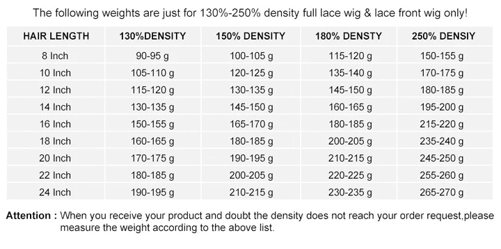 Длина волос должна быть измерена от верхней части головы до нижней части волоса, так как волосы имеют прямое состояние. Завиток и волнистый парик обрабатываются из прямых париков. Таким образом, в той же длине, завиток и волнистый парик должны быть короче на 1 ''-4'', чем прямой парик (это зависит от того, насколько глубоко завиток)