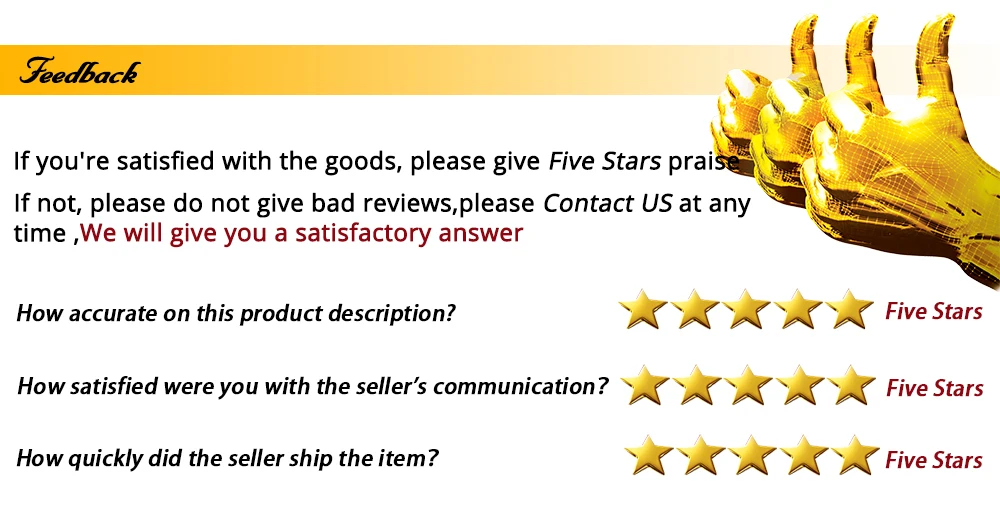 4. Мы должны помочь им решить любые проблемы, пожалуйста, свяжитесь с нами, прежде чем оставлять нам отрицательные отзывы.