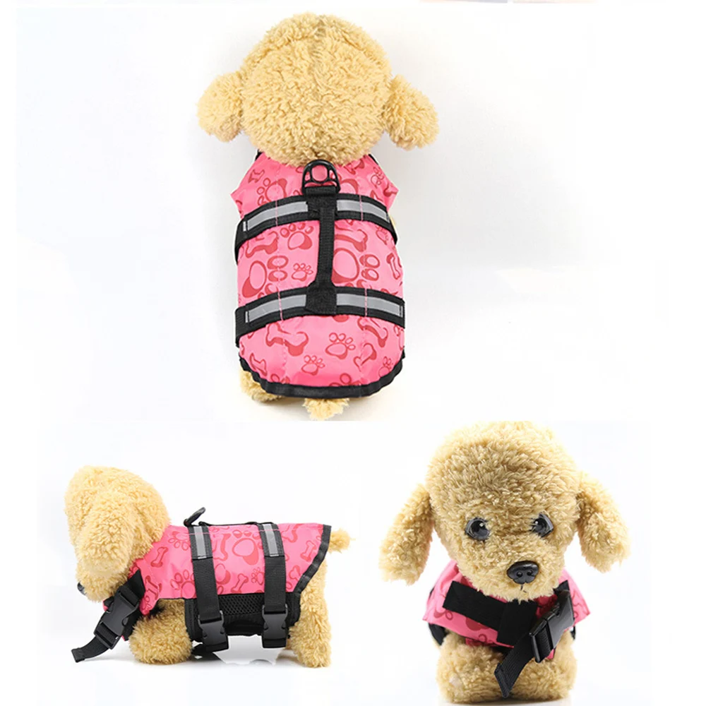2. Регулируемый спасательный жилет для собак, разработанный с верхней полоской для легкого спасения вручную или крючком для лодки в воде;