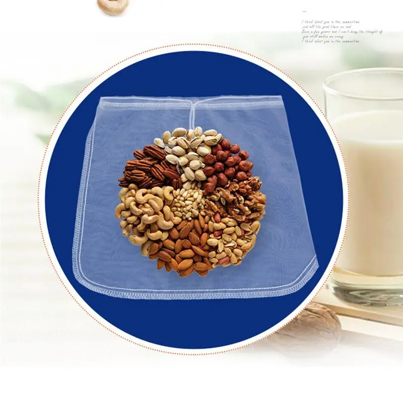 Этот Фильтрующий мешок является идеальным ситечком для соков, йогуртов, домашнего миндального молока, кокосового молока, ghee, овощей или фруктовых соков, все гладкие, кремовые и вкусные. Моющаяся, многоразовая, не пахнет и используется для длительного использования. Быстрое высыхание и шнурок для удобства переноски. Этот продукт может быть предоставлен в качестве отличного подарка для ваших друзей и семьи. Они будут очень счастливы.1 x фильтр-мешок