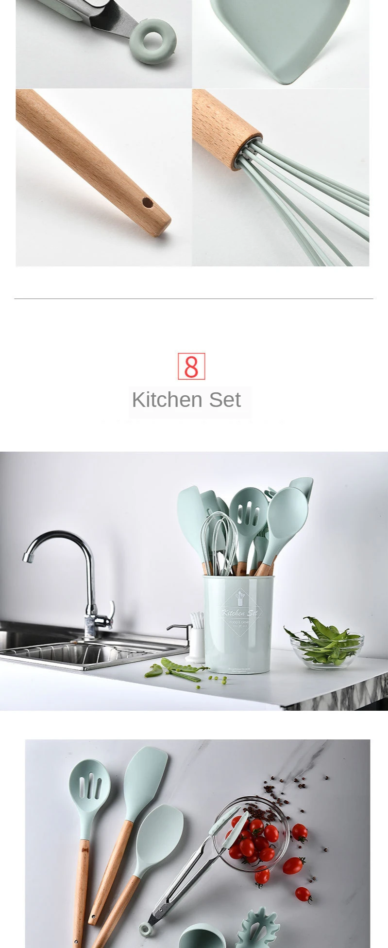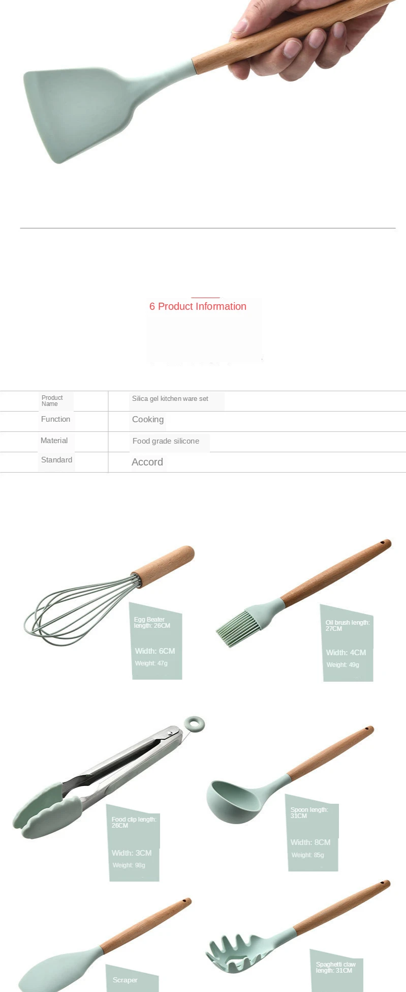 Набор силиконовой посуды-кухонный помощник, идеально подходит для всех видов продуктов и кухонных принадлежностей, жарки, перемешивания крема, масла, мороженого и т. д. Включает лопатку, щётку для протирания, шпатель с острым носком, Тернер с круглыми краями, ковш, токарь с прямыми краями, ложку, щипцы, Паста вилка и идеально подходит для всех типов продуктов и приготовления пищи.