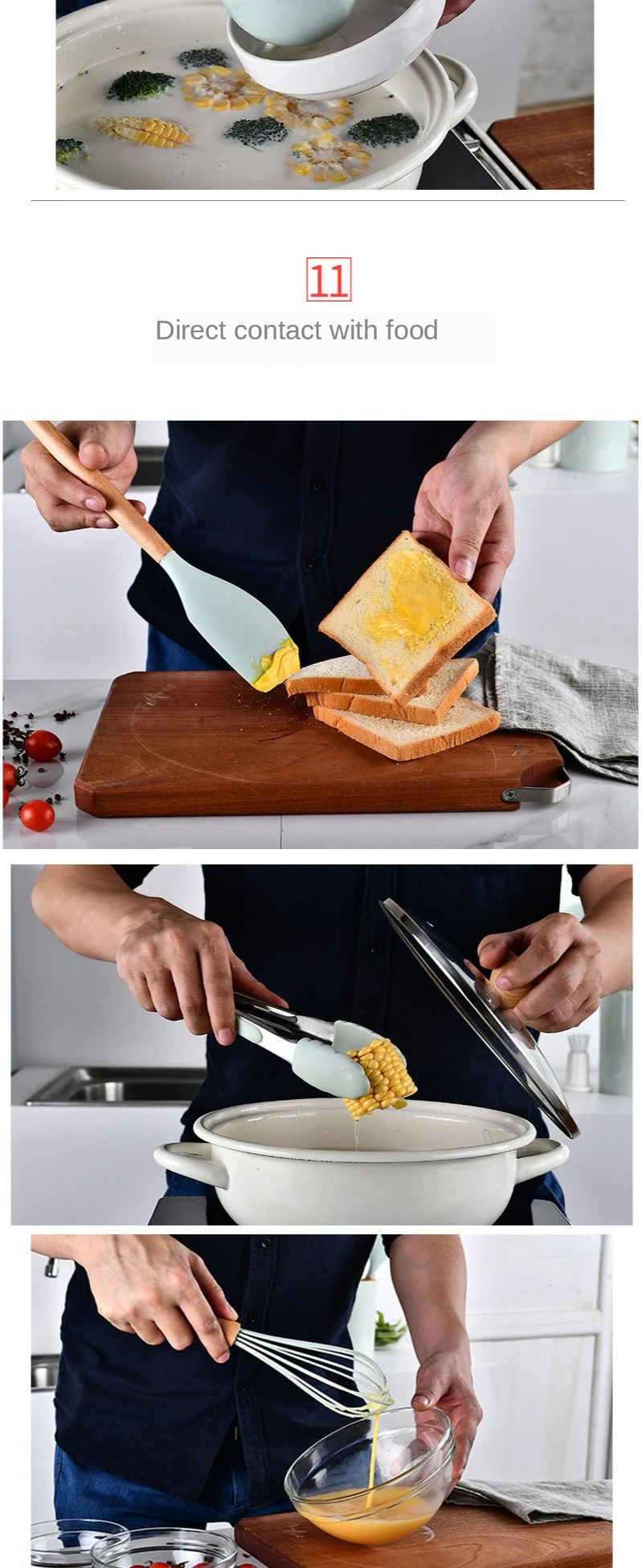 3. Силиконовая посуда с деревянными ручками не может использоваться в посудомоечных машинах. После волдырей, тепловое расширение и сжатие будут тяжелыми.