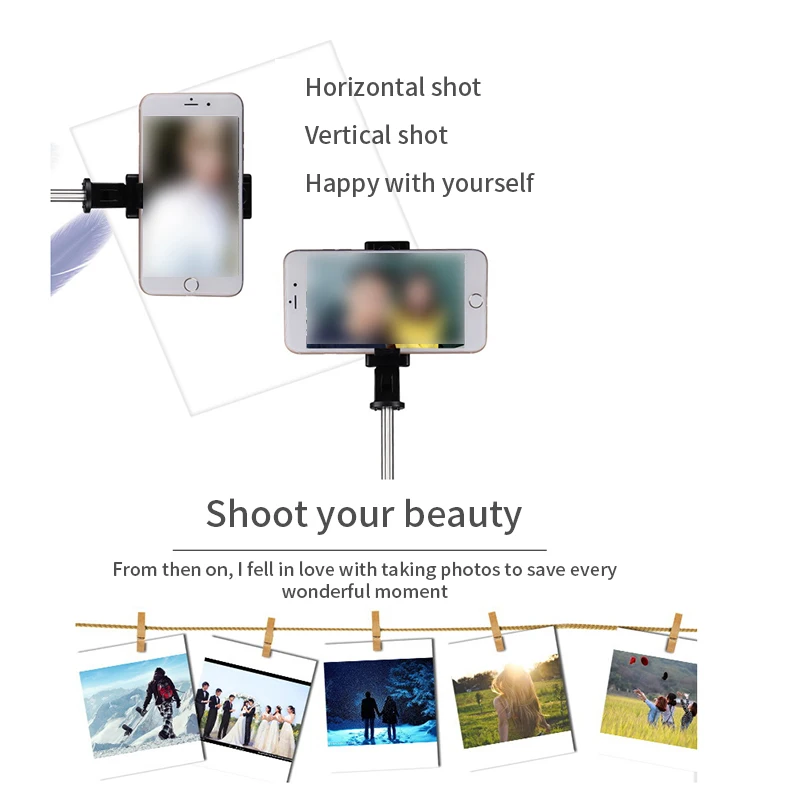 Стержень с автоспуском, легкость и устойчивость, 5 бит тянуть до 70 см, захватить самые красивые пейзажи. Высоковыдвижная рама для портативности и эргономичная ручка для лучшего захвата.