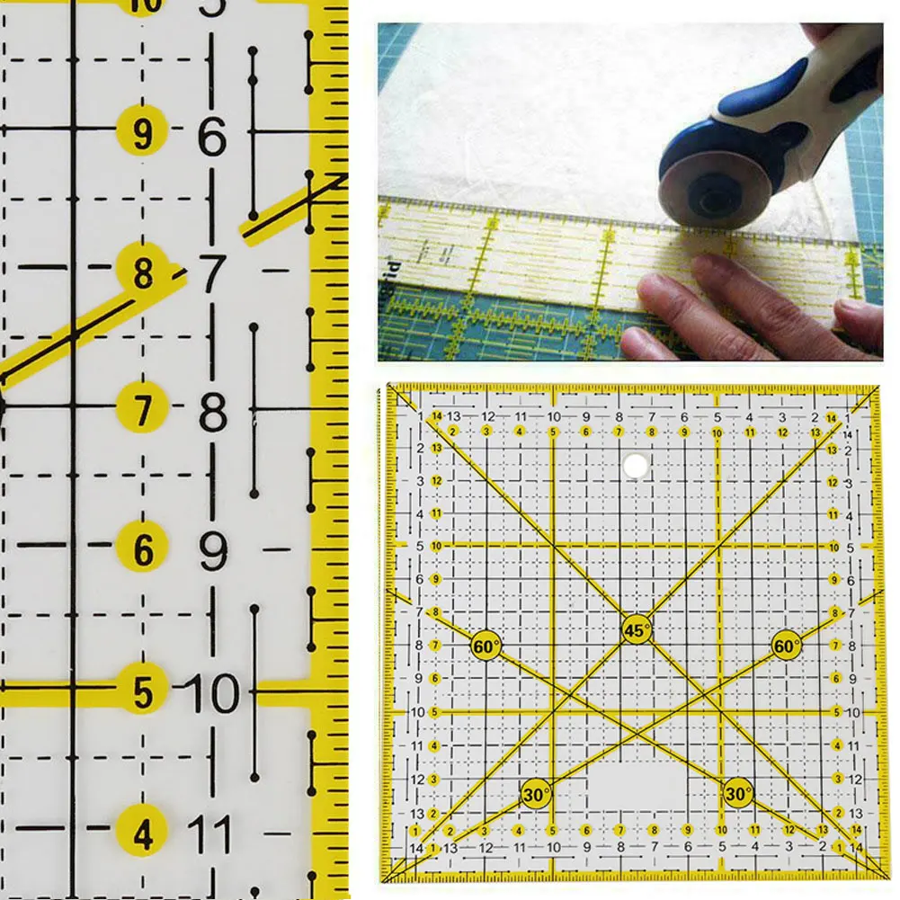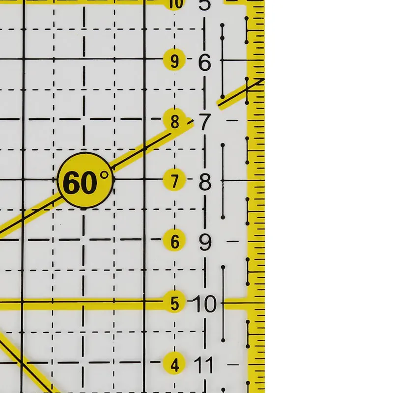 Применение: Прозрачная стеганая швейная линейка с желтыми и черными линиями, которая может использоваться как на темных, так и на светильник.