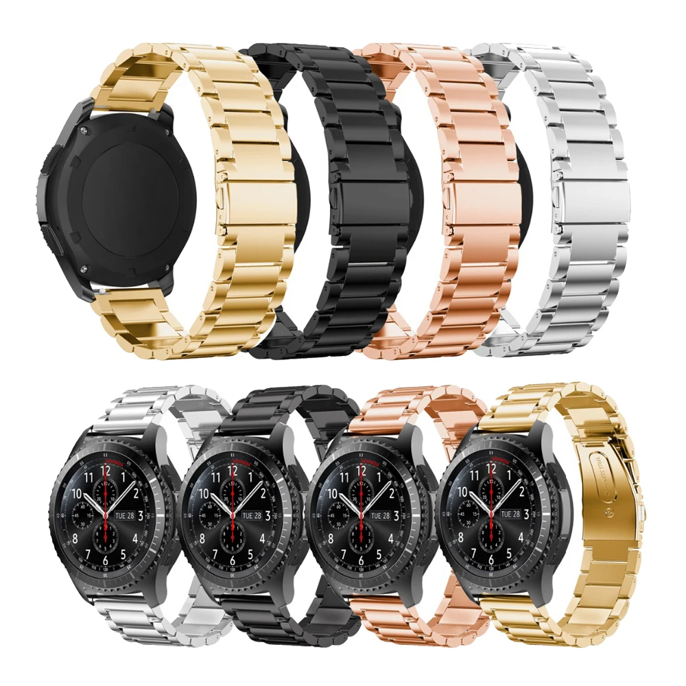 Особенности: Персонализируйте часы: уникальная складная застежка с двойным замком надежно фиксирует ваш ремень. Легко устанавливается и удаляется. Не беспокойтесь о том, что упадут. Выбор бар ширины и настраиваемым ремешком Длина: 18, 20, 22 мм | Толщина: 2,5 мм | Длина подходит для запястья. Длина может быть отрегулировано с помощью прилагаемой инструмент к окружность запястья. Материал высокого качества: браслет состоит из высококачественной нержавеющей стали 316L, которая полируется в результате нескольких процессов и окрашена вакуумным покрытием. Таким образом, он более износостойкий и коррозионно-стойкий, и никогда не будет ржаветь. По сравнению с резиновой лентой, этот ремешок из нержавеющей стали лучше пропускает воздух и защищает вас от аллергии Версия 20 мм, подходит для часов Galaxy 46 мм/Gear s2 classic Sport и других универсальных наручных часов 20 мм Версия 22 мм, подходит для Gear S3 FRONTIER / CLASSIC , Galaxy watch 46 мм, универсальный 22 мм