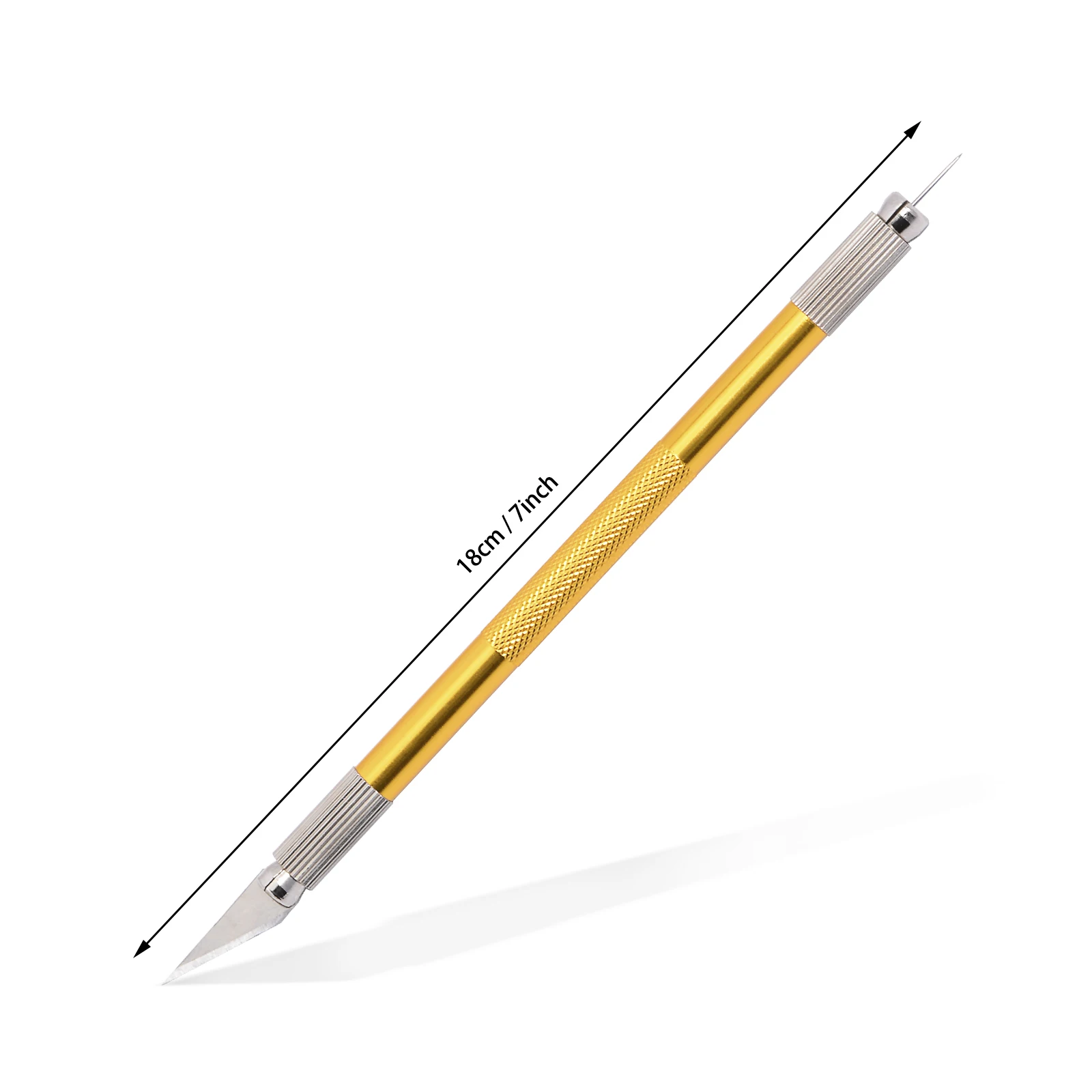 Package included: 1* Double-ended knife +5* Spare blades Material: Stainless steel, metal Size:18cm/7inch Features: 1. Spare blade on one end, Come with 5pcs spare razor, for cutting vinyl 2. Double-edged Utility Cutter: One side can be a carving knife which can help you cutting and carving, another side can be an air bubble remover. 3. Easy to replace old blades, just loosen the screw and take out the new changeable blades and tighten it again. Maybe cost you 10-15 seconds. Application: 1. Universal for carft vinyl,car wrapping,window tinting and paint protection film installation projects. 2. Air bubble release, water bubble remove. 3. Simple to Cut the paper, cut the rubber, wallpaper, and vinyl wrap film,