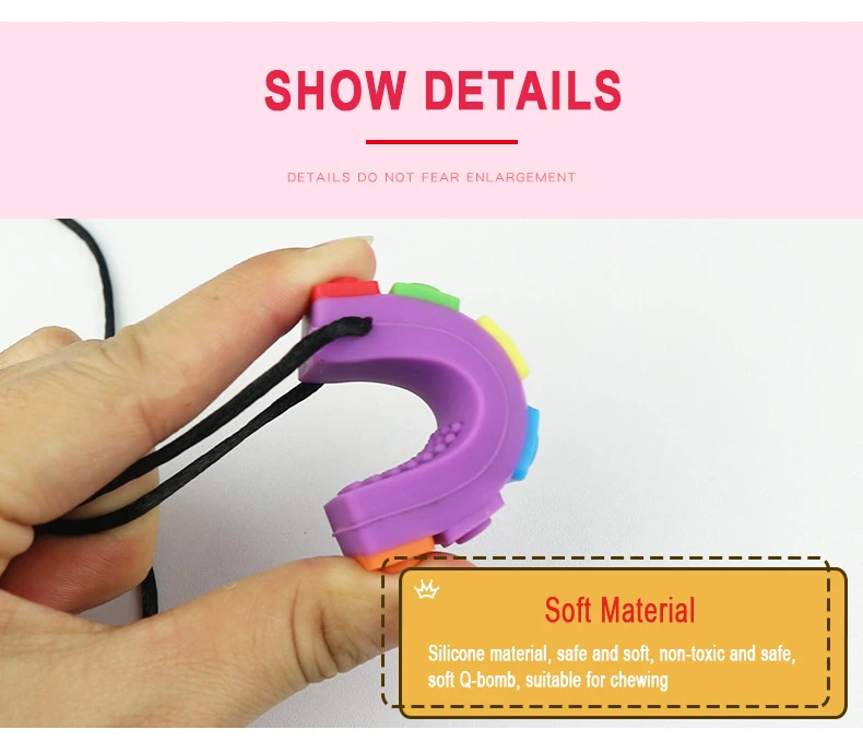 New Brick Chew Baby Silicone Teether Rainbow Autism Biter Sensory Chewy Toys Necklace Biting Topper Sensory Therapy Gift 2020