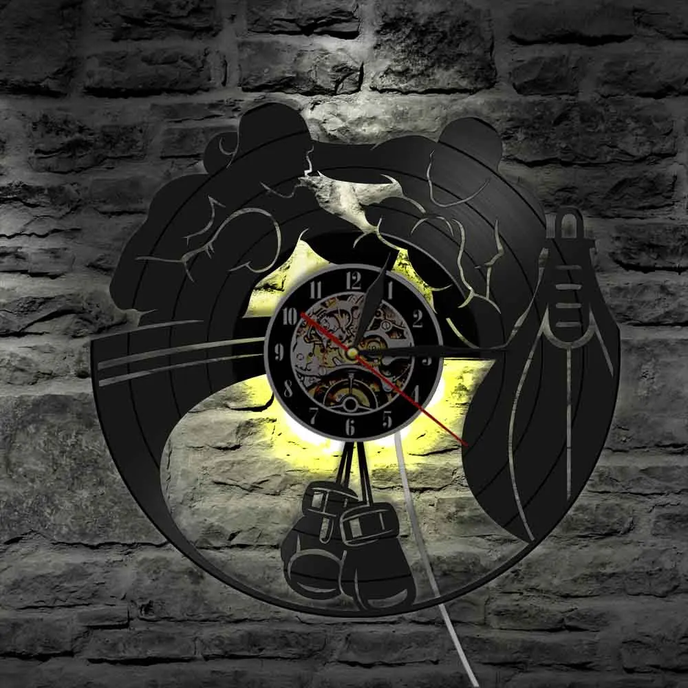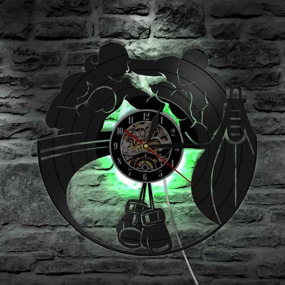 Boxing Vinyl Record Wall Clock Home Decor Boxing Gloves Punching Bag Infighters LED Wall Clock Fighting Sports Boxers Scrappers