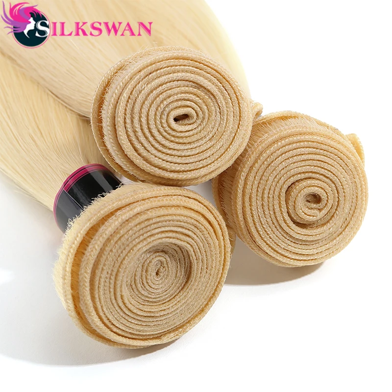 613 Blond Double Weft Silkswan Hair Remy Human Hair Bundles 1/3/4 Brazilian Soft Straight Weaves 24 26 28 30 Inches Free Shipping