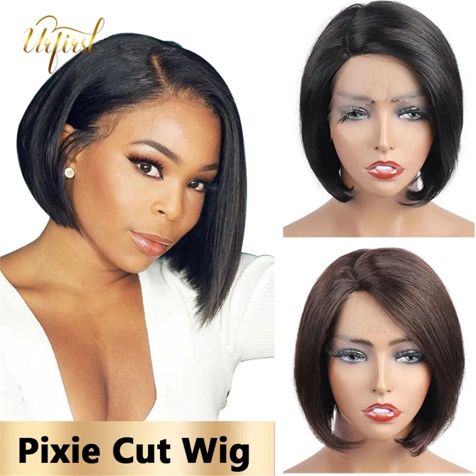 Парик Пикси короткий боб парики для чернокожих женщин цветные человеческие волосы парики коричневые прямые человеческие волосы парики Пикси стрижка боб парик Funmi волосы