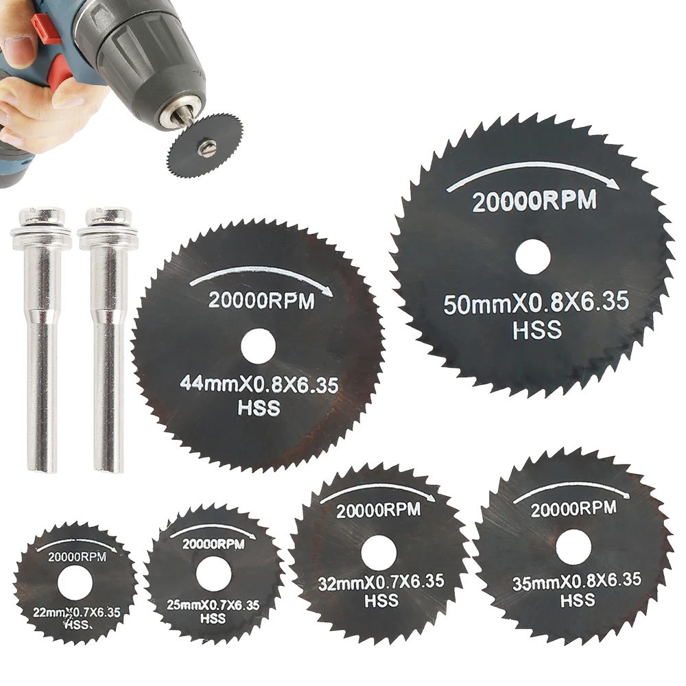 8 шт. Мини HSS циркулярная пила, вращающийся инструмент для Dremel, металлический резак, электроинструмент, режущие диски для дерева, сверло оправы для среза