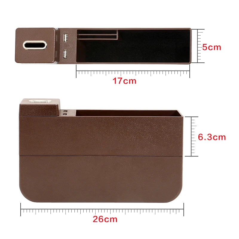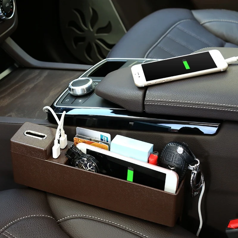 [Creates Extra Storage]This car seat organizer will save you countless times from digging between the seat and center console to find your dropped things. This seat catcher designed with Perfect width to cover the gap and create extra storage space for smartphone, cards, wallet, cigarette, keys, lipstick, coins, etc. Two USB port is included to allow you charge two usb devices safely.