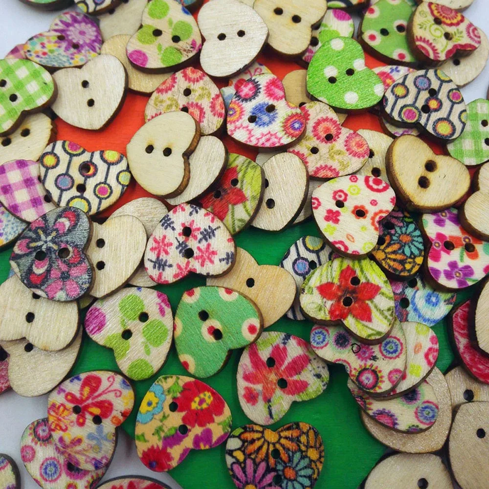 100 разных цветов в форме сердца 2 отверстия деревянные Швейные Кнопки Скрапбукинг Knopf бутон