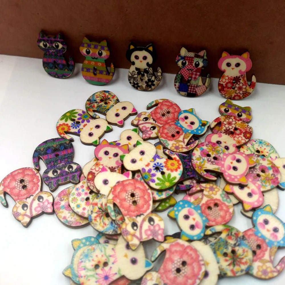 50 шт Смешанные кошки 2 отверстия деревянные пуговицы для шитья Скрапбукинг ремесла