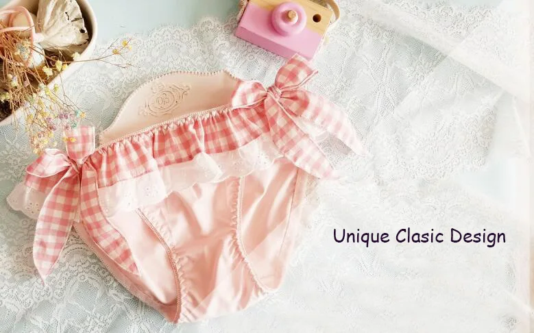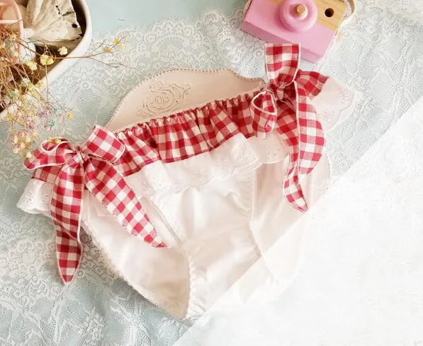 Новое поступление 2020, бесплатная доставка, 100% настоящая фотография, милые сексуальные клетчатые трусики в стиле Лолиты с большими бантиками сбоку, клетчатые трусики, нижнее белье, нижнее белье, KnickersWP673