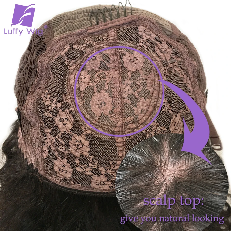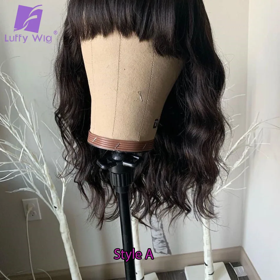 Loose Wave Wig With Bangs Scalp Base Machine Made Human Hair Wig