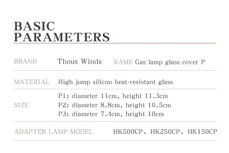 Бренд: Thous WindsМодель лампы адаптера: HK500, HK250, HK150Материал: высокоборосиликатное жаростойкое стекло Советы: товар только стеклянный чехол для фонаря, без освещения, спасибо!