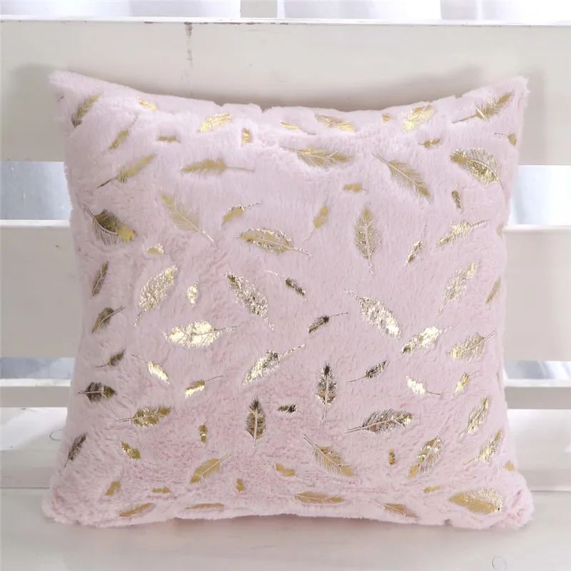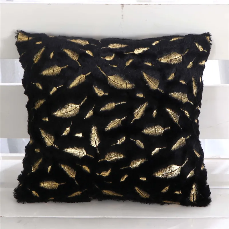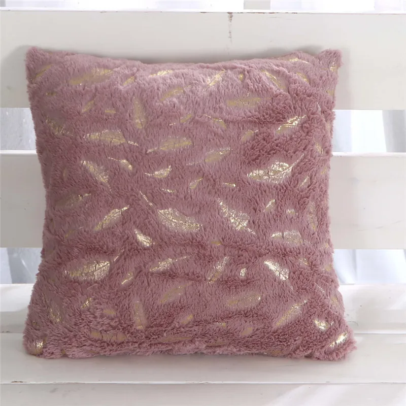 Короткая плюшевая наволочка с бронзовыми листьями, теплая наволочка для дивана и кровати, квадратная наволочка для домашнего декора, наволочка для автомобиля и офиса