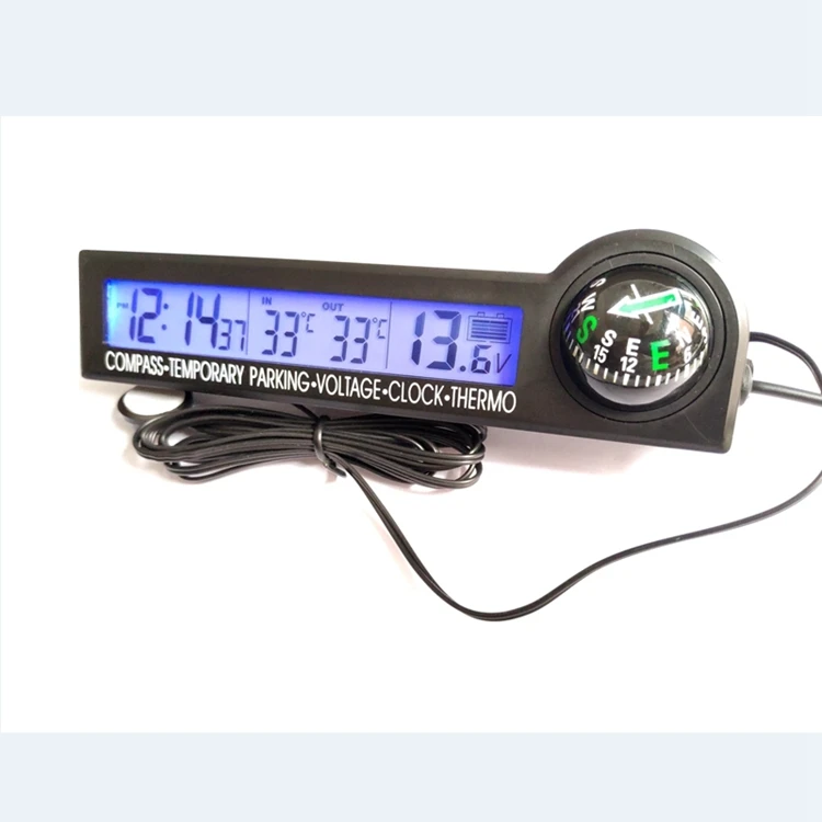 Автомобильные цифровые часы Campass, термометр 12 В, измеритель напряжения, обледенение, будильник с ЖК-подсветкой, украшение для временной парковки