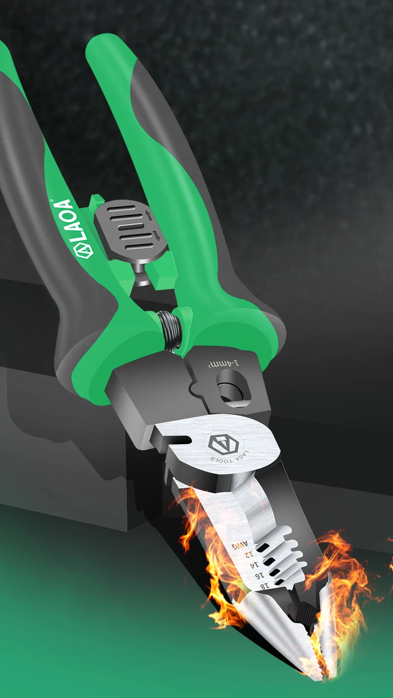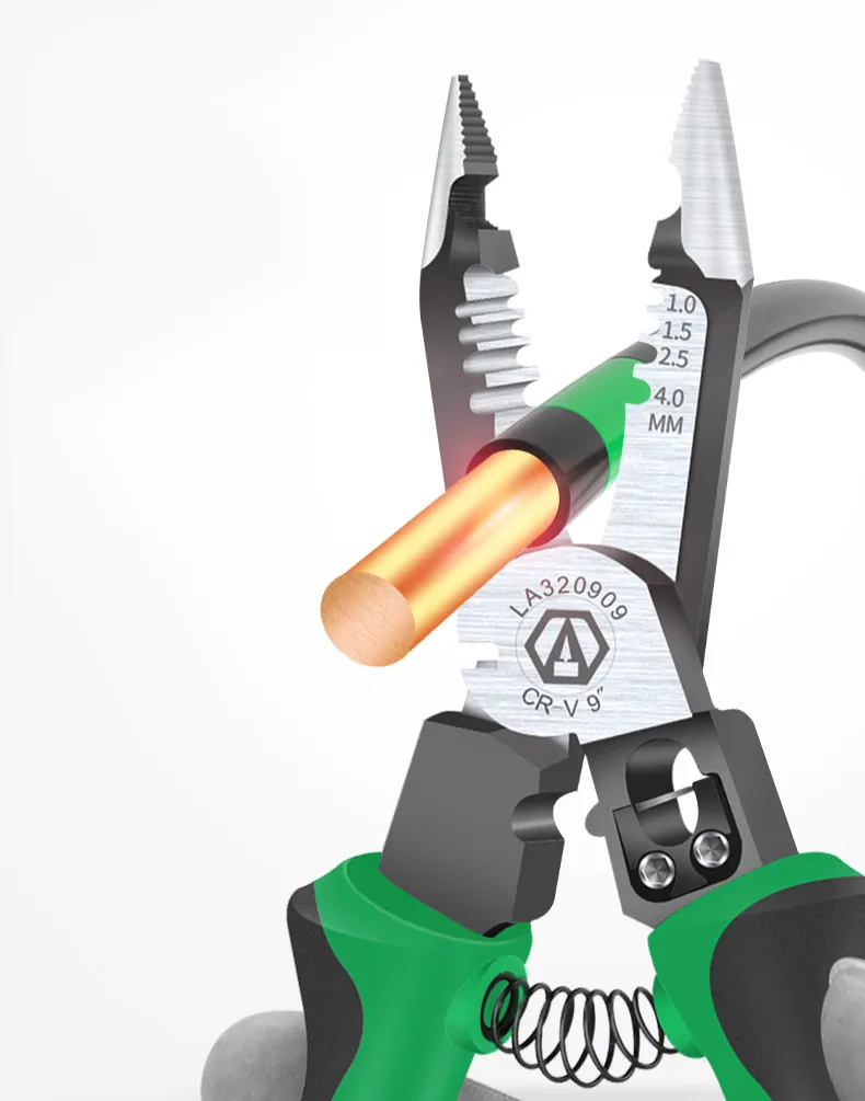 1. Многофункциональная конструкция шесть в одном, зажим, резка, зачистка, резка провода, распределение, обжим клемм