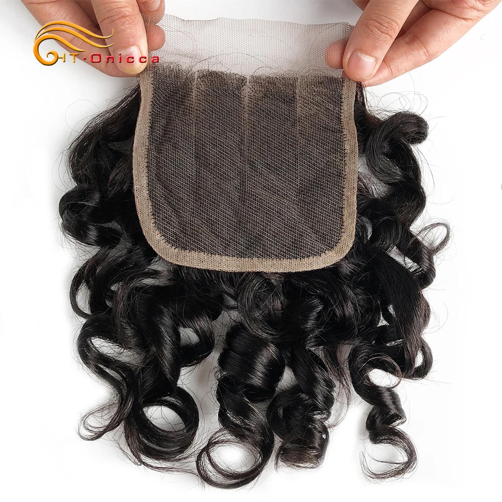 Бразильский Вьющиеся Кружева Закрытие 4x4 три части предварительно вырезанные 100% человеческие волосы застежка Цвет 1B/27/4/30/33/99J Волосы Remy застежка