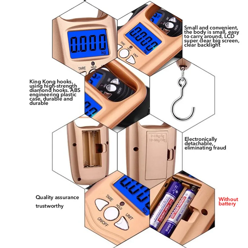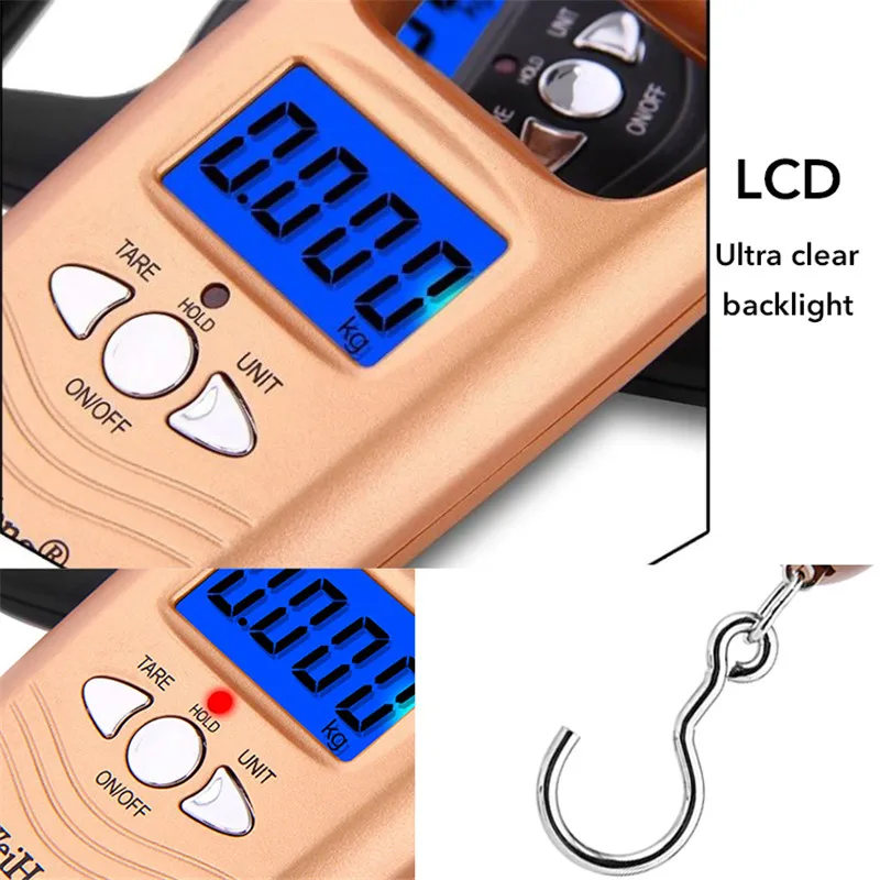7> подвесной крючок: весы имеют прочный крючок для очень точного измерения различных типов сумок.