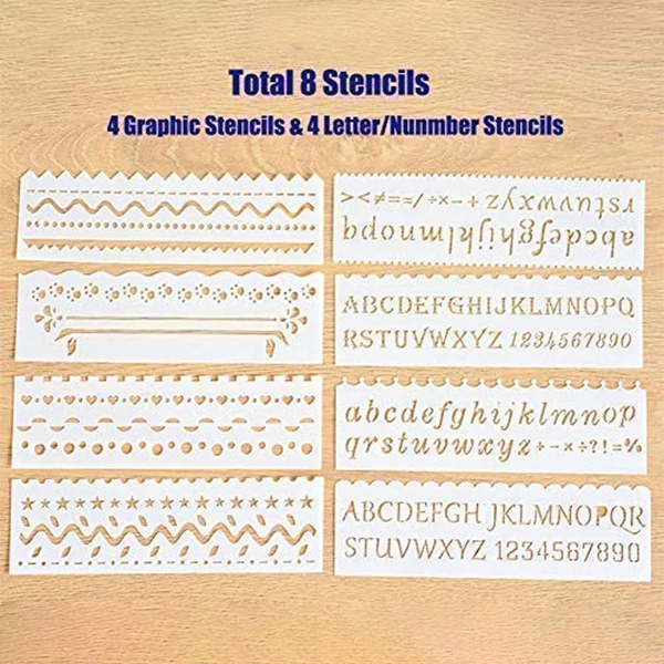 Всего 30 бит и 8 трафаретов включает в себя 10 остроконечных бит, 5 круглых бит, 4 фигурных сверла, 11 плоских бит; 4 графические трафареты и 4 трафареты с буквами/цифрами. Подходит для всех ваших потребностей от тонких линий до глубоких канавок