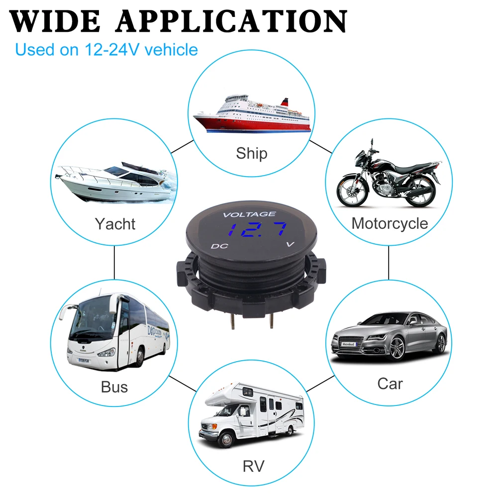 12V 24V Напряжение метром автомобильный морской мотоцикл светодиодный цифровой вольтметр Батарея датчик