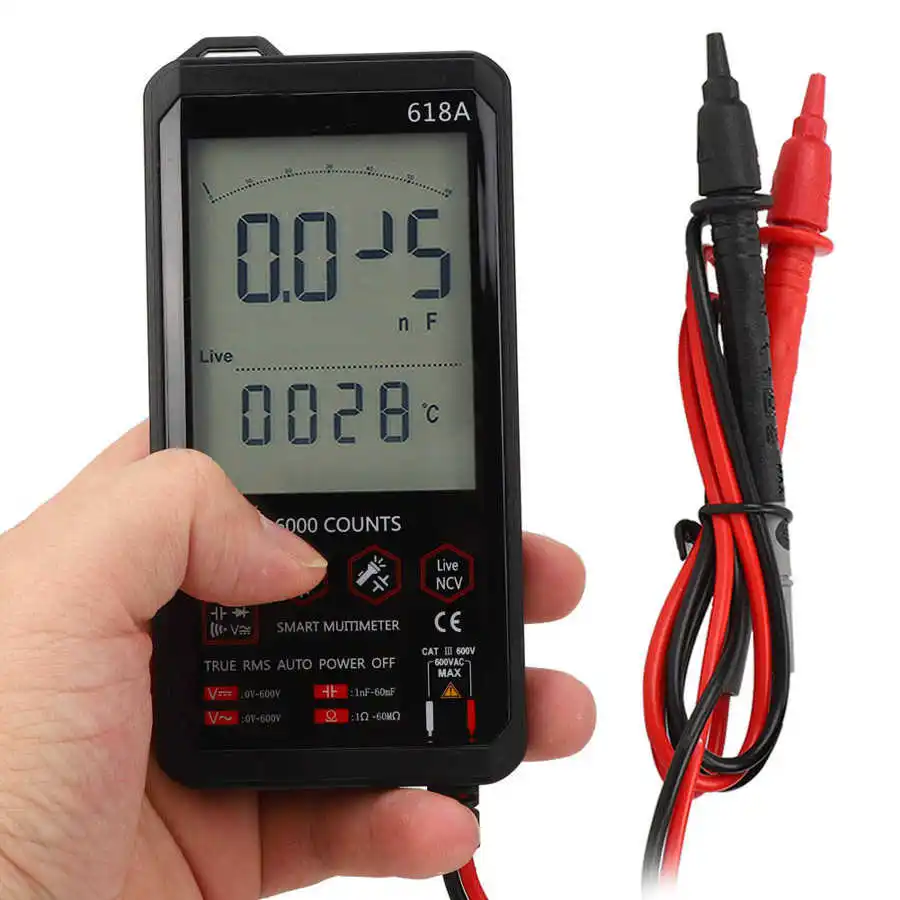 618A Smart Touch Digital Multimeter DC/AC Analog Tester True RMS Capacitance NCV Meter
