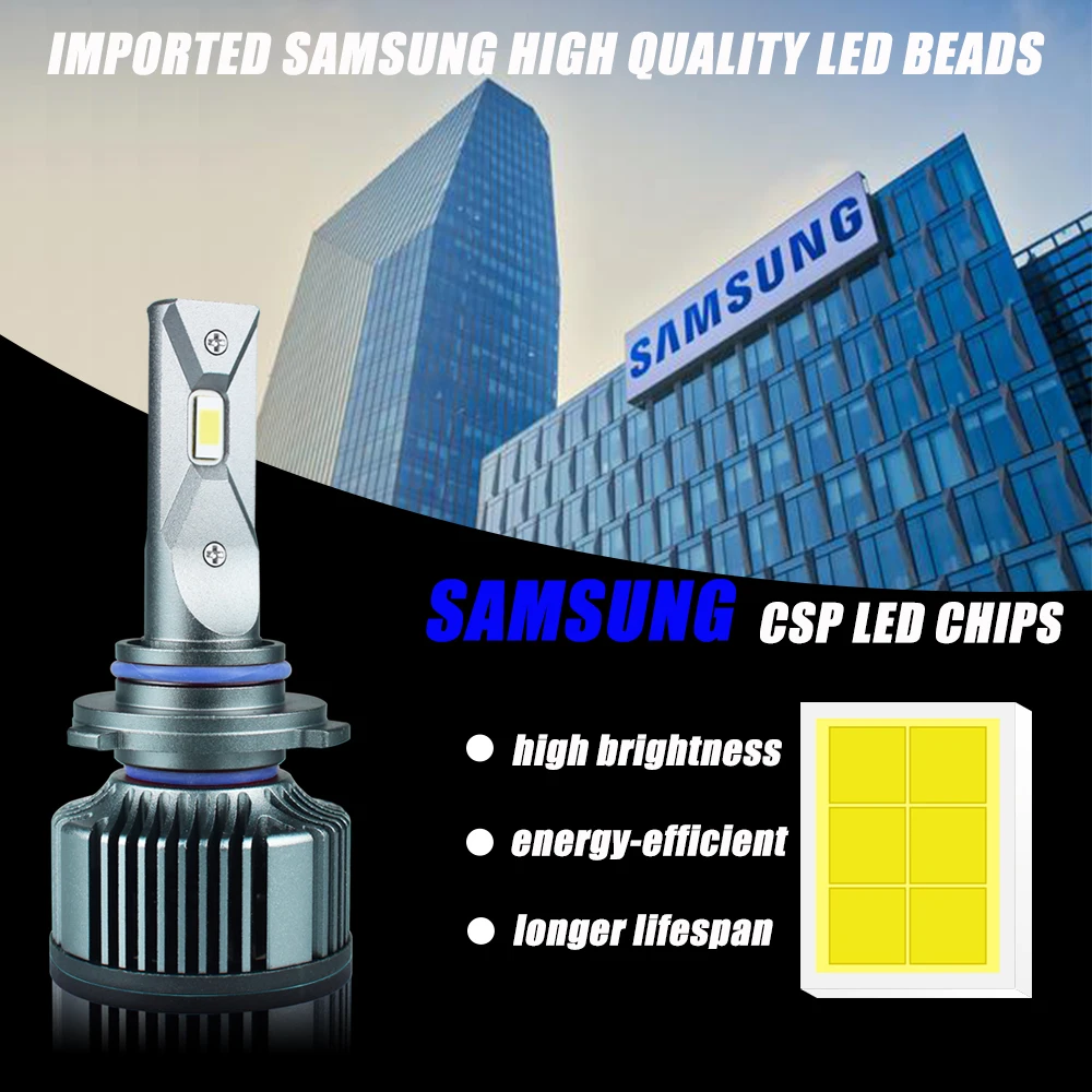H1/9006(HB4)/9005(HB3)/H11/H8/H7: Одиночный луч H4: дальний-ближний свет СВЕТОДИОДНЫЕ Чипы: импортные SAMSUNG-CSP чипы Световой поток: 14000LM Рабочее напряжение: DC9-32V Мощность: 72-80 Вт (обычно реальная мощность будет 80-90% входной мощности, это нормально) Цветовая температура: чистый белый 5500K/6000K IP68 Номинальное водо-и пылезащитное уплотнение. Рабочая температура:-40-+ 80 градусов Цельсия Более 30000 часов продолжительности срока службы Водонепроницаемый/пыленепроницаемый/ударопрочный Двусторонний канал отвода тепла Модель автомобиля: для 98% автомобилей или транспортных средств (если вы не знаете о модели лампы для вашего автомобиля, пожалуйста, свяжитесь с нашей службой поддержки клиентов, мы можем вам помочь.) Адаптер: Наши лампы являются разъемами stardand, пожалуйста, купите дополнительные адаптеры в нашем магазине, если вашему автомобилю нужны дополнительные адаптеры. (Некоторые автомобили используют H7 extra или specail адаптеры) Canbus: Ошибка бесплатно для 98% автомобилей. (Не подходит для специальных автомобилей, например: не для Volvo, не для сиденья, не для Scania, не для BMW-mini и других специальных автомобилей), для большинства автомобилей, не нужно покупать внешний canbus.