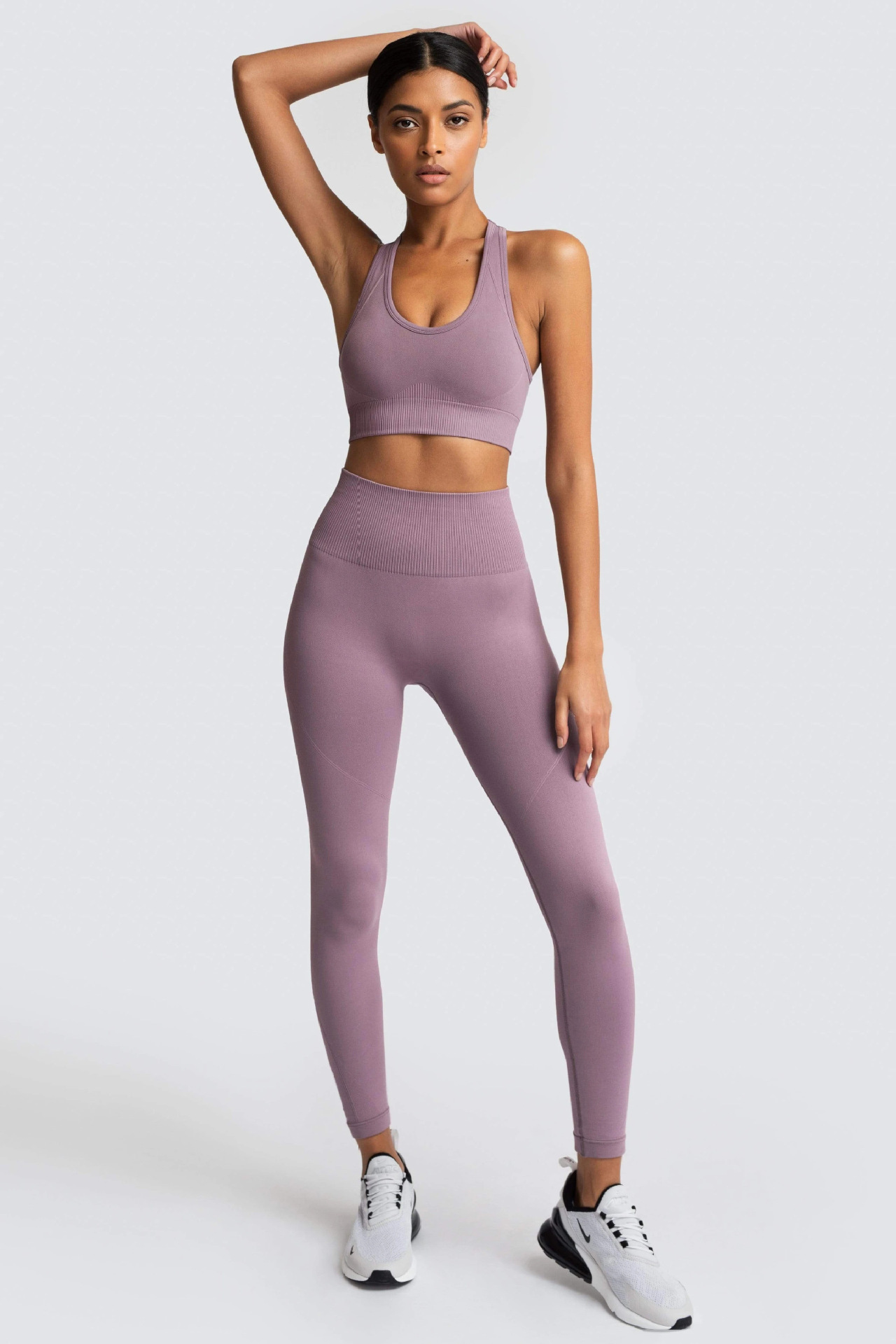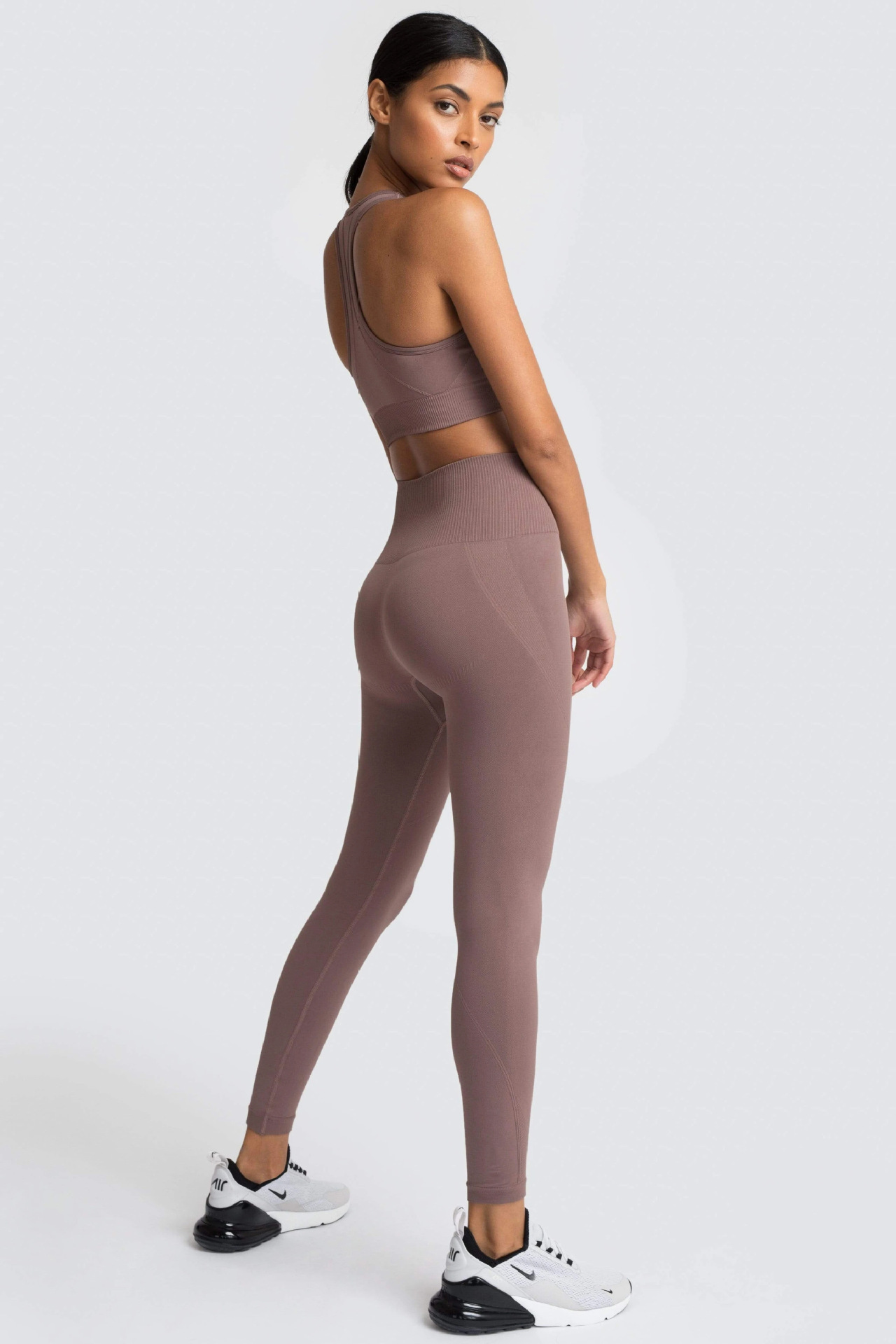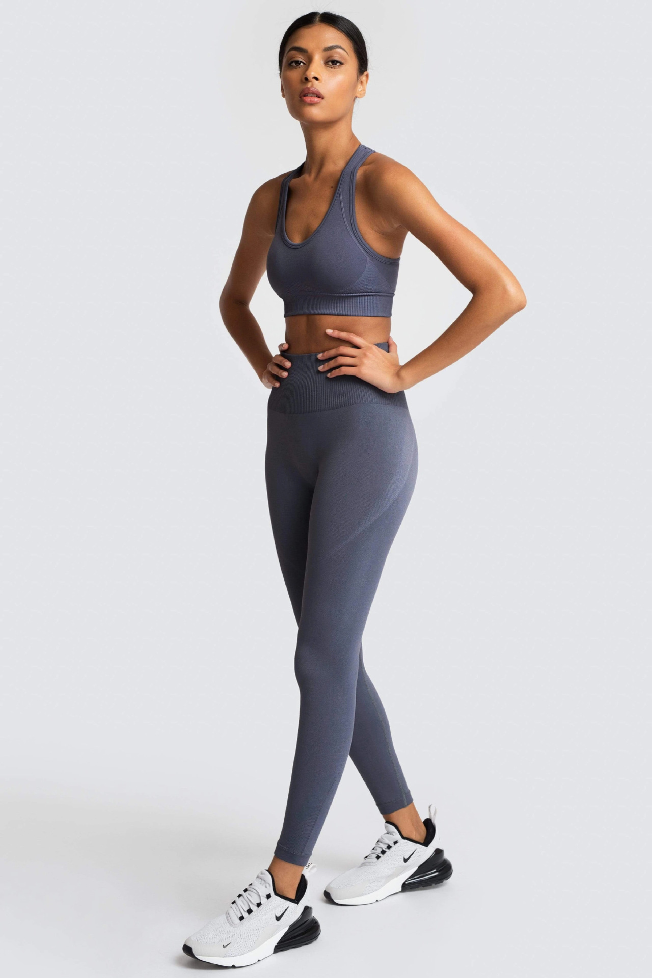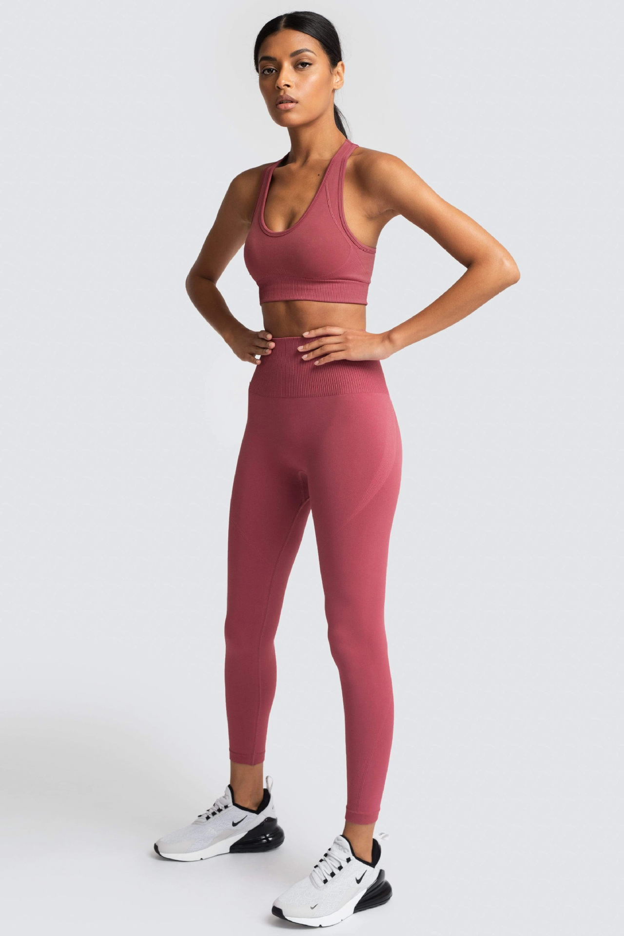 Спортивная одежда, бесшовный Женский комплект для йоги, трикотажная быстросохнущая Спортивная одежда для фитнеса, комплект из 2 предметов, спортивный топ на бретелях + штаны, костюм, одежда для тренировок