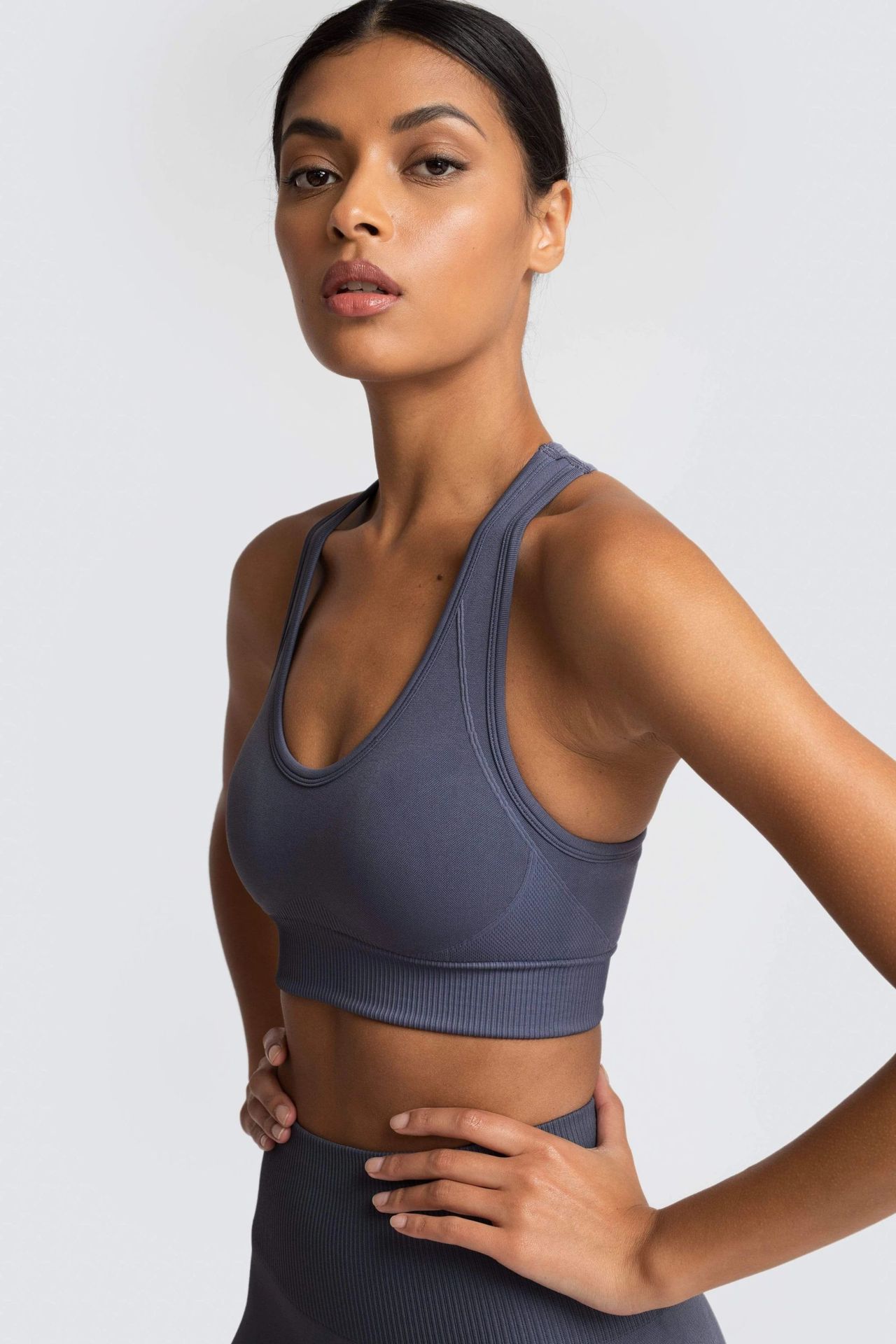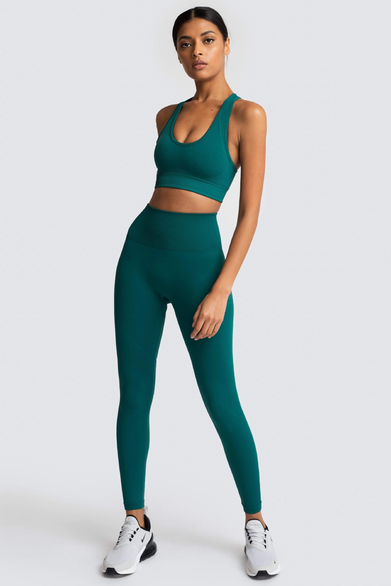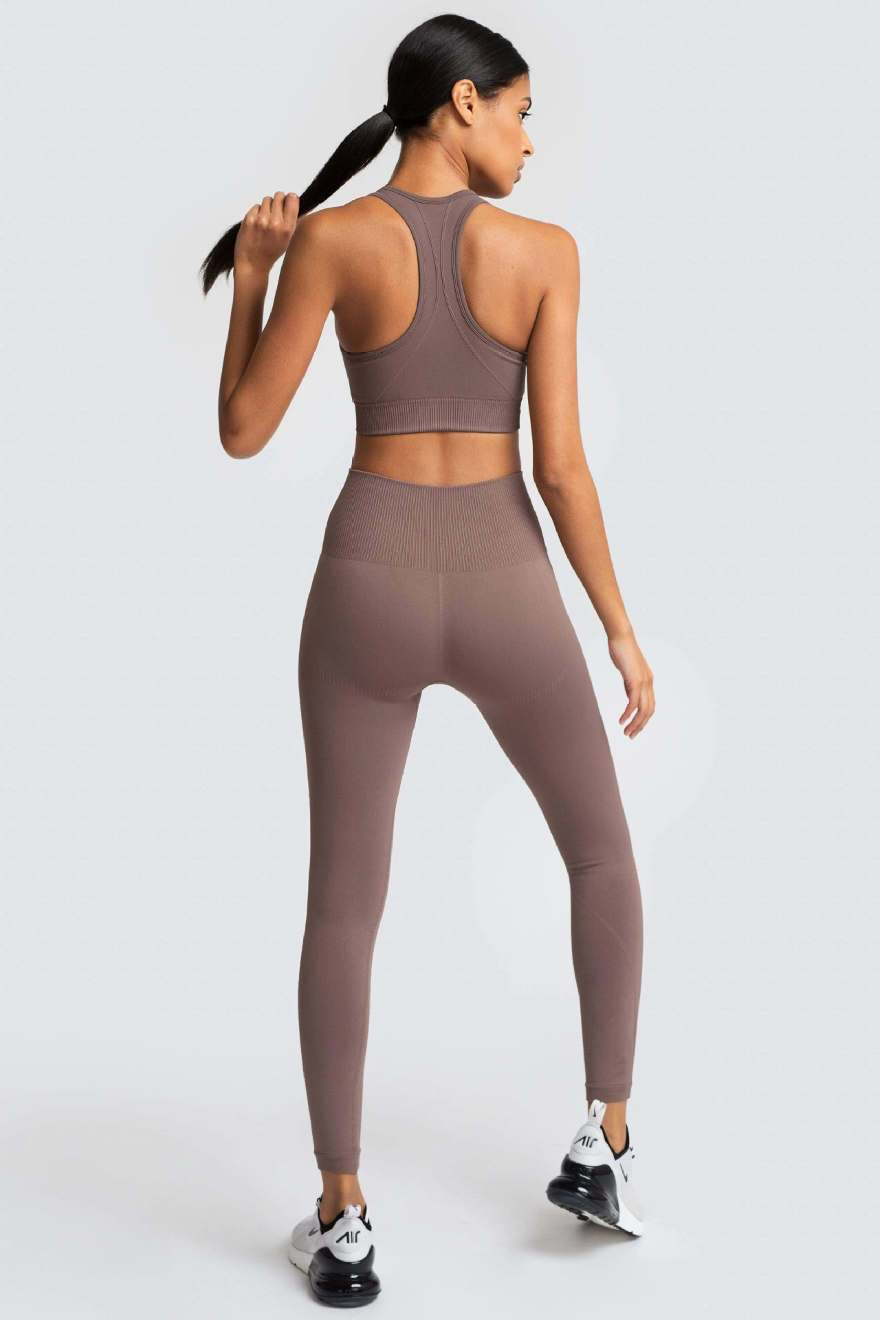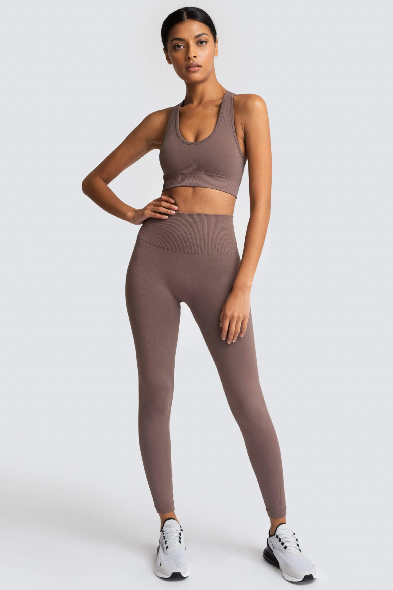 Спортивная одежда, бесшовный Женский комплект для йоги, трикотажная быстросохнущая Спортивная одежда для фитнеса, комплект из 2 предметов, спортивный топ на бретелях + штаны, костюм, одежда для тренировок