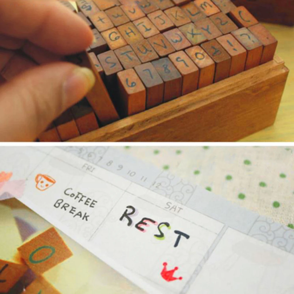 70 шт./компл. деревянные цифры английские буквы даты Алфавит штампы дневник бумажный Декор
