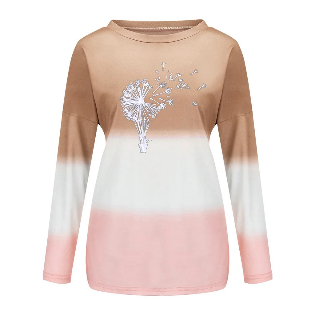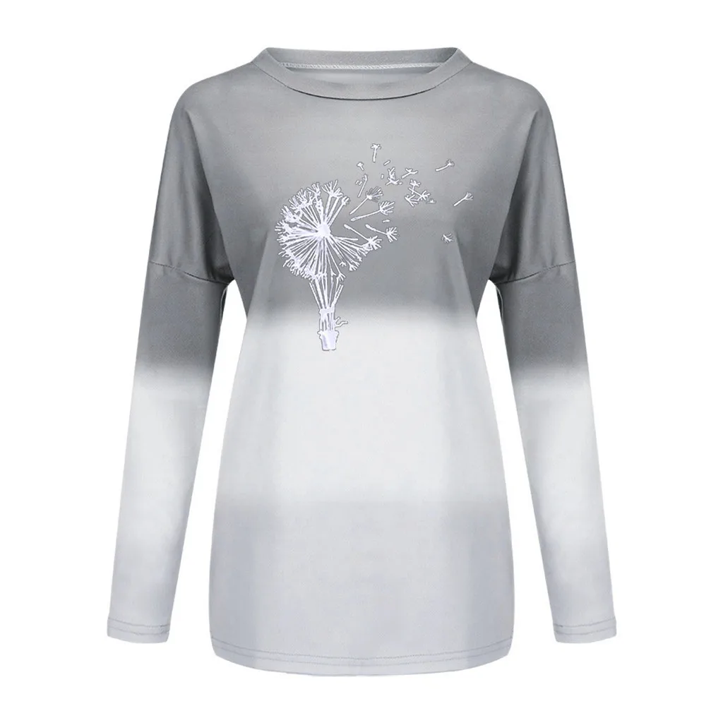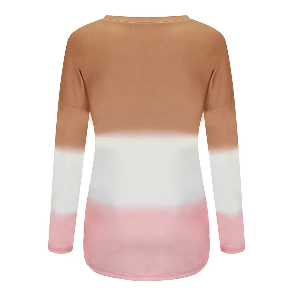 Женская модная Свободная блузка с длинными рукавами и круглым вырезом, градиентная Толстовка