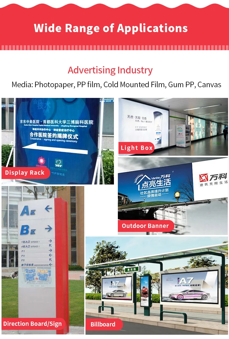 | Эко-растворитель | Автомобильная наклейка/лампа ткань/Лицевая пленка/баннер с покрытием/флаг ткань |