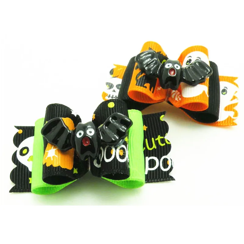 100% Новый бренд Материал: лента Цвет: оранжевый, фиолетовый, черный, зеленый и т. Д. Размер: около 4 см Костюм для праздника Hallloween Посылка включает в себя: 100x бантов для волос домашних животных Изображение: