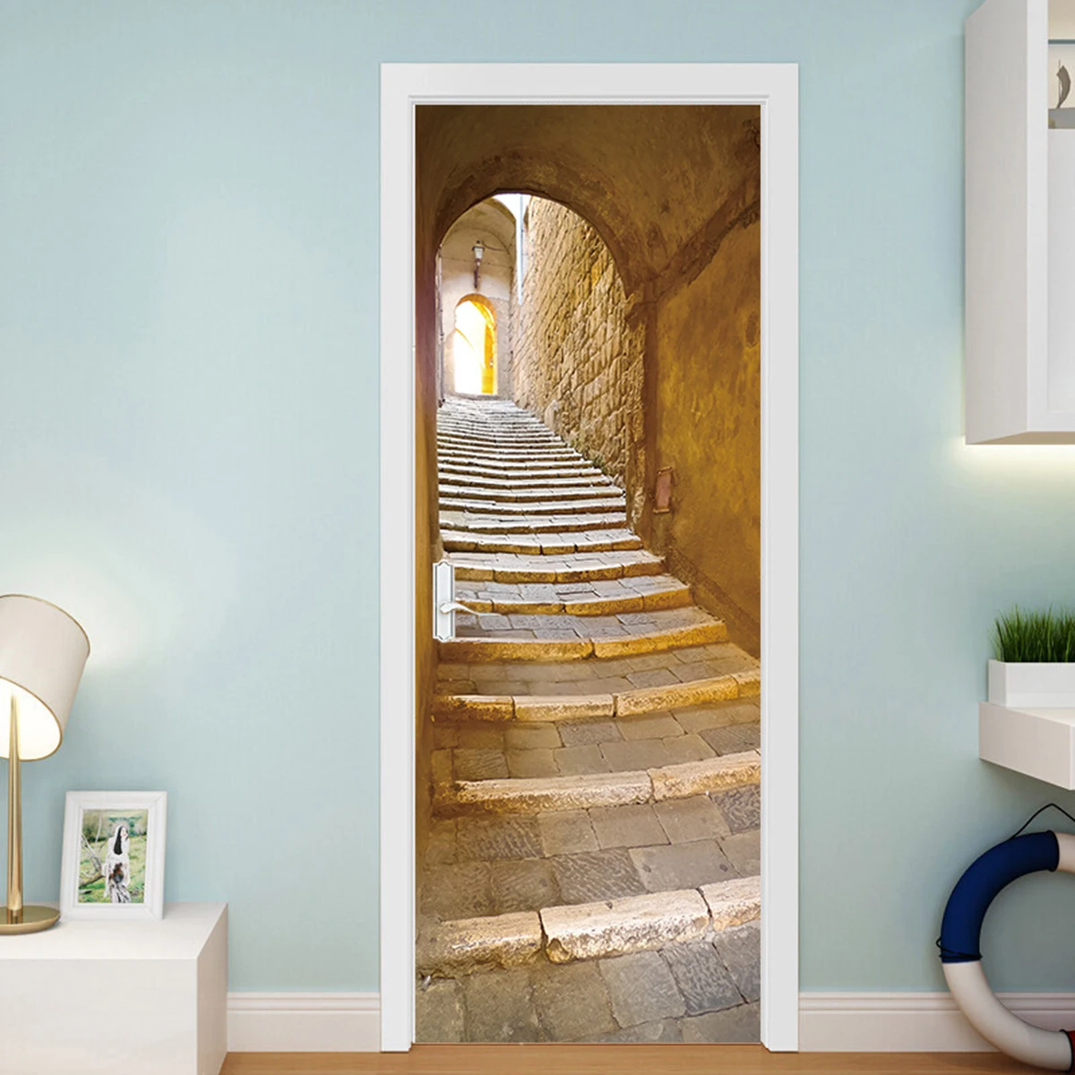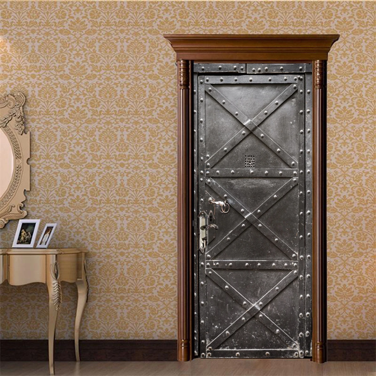 Имитация деревянной двери современные линии наклейка абстрактное искусство