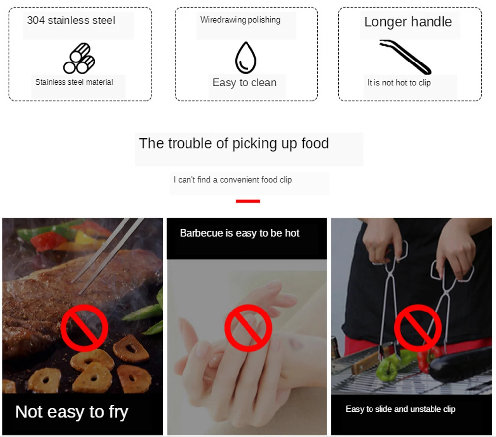 Название: 304 Зажим для барбекю из нержавеющей стали Вес: 210 г [Материал] 304 нержавеющая сталь экологически безопасный материал 【Use】bbq; Формы для выпечки
