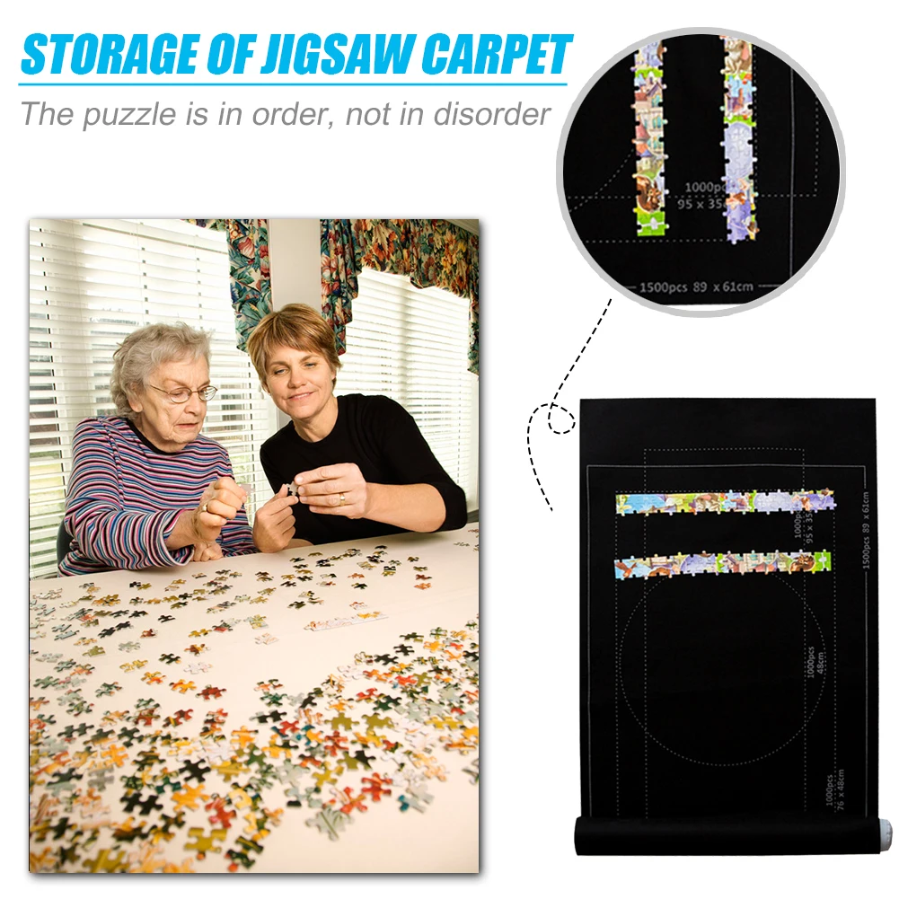26x46 inch Puzzles Mat Roll Up Jigsaw Felt Playmat Blanket for Up to 1500pcs Puzzle AccessoriesSpecification: Item: jigsaw storage blanket Material: felt Size: 26x46in Color: Black/Grey Purpose: jigsaw storage pad Note: Does not contain jigsaw puzzle! Due to the different monitor and light effect, the actual color of the item might be slightly different from the color showed on the pictures. Thank you! Please allow 1-3cm measuring deviation due to manual measurement. ![]() 1 x Jigsaw Storage Mat