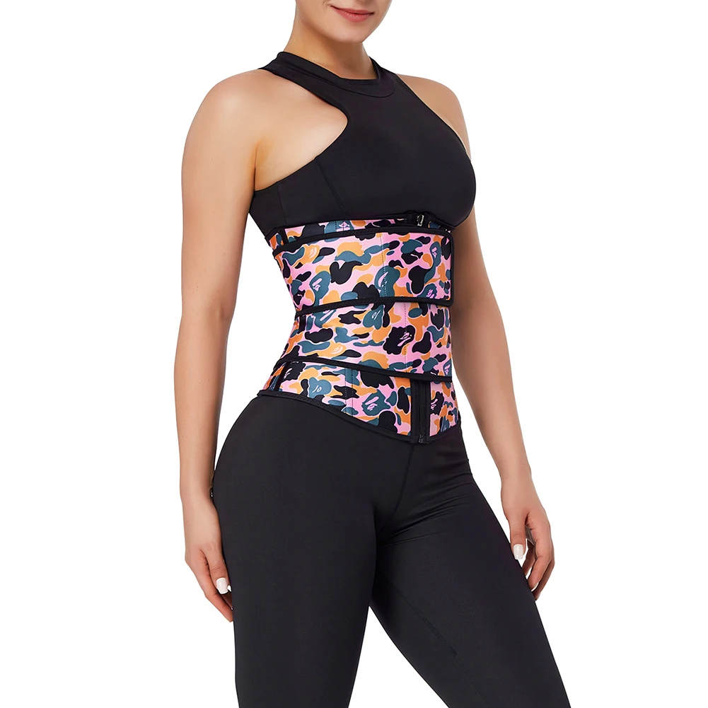 1. Трехслойная композитная латексная и розовая камуфляжная печать. 2. Дизайн двойных ремней для легкой регулировки и супер контроля живота и талии. 3,7 Стальные Кости могут усилить эффект формы. 4. Дизайн молнии для легкого ношения и разрыва, позволит вам скрыть его и дать вам более тонкую поддержку армирования. 5. Ядро из латекса помогает с потерей веса и скульптурой и формированием талии. 6. Идеально подходит для формы песочных часов, отлично подходит для короткий торс и нормальных типов тела туловища.