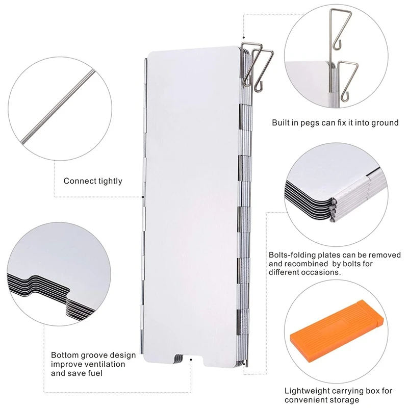 Кемпинг плита Windsn 10 пластин легкий складной лобовое стекло с коробкой для хранения для наружного пикника гриль, серебро